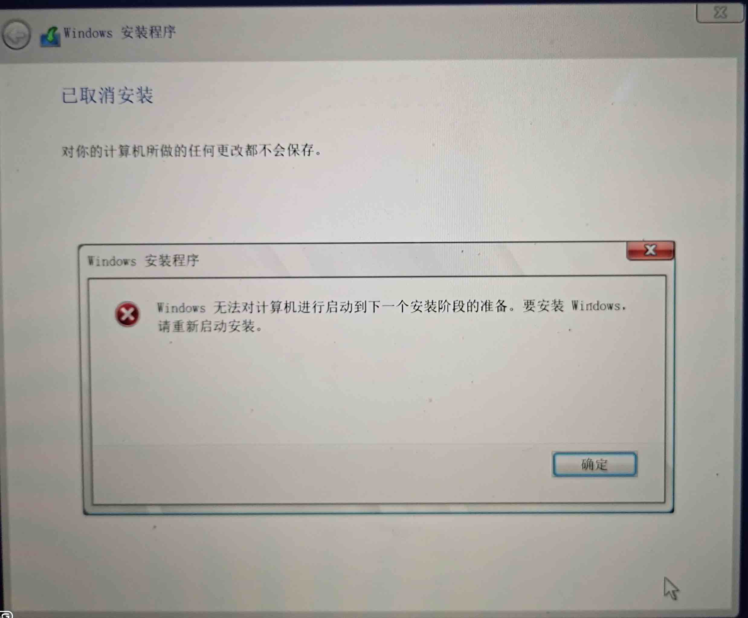 Windows无法对计算机进行启动到下一个安装阶段的准备。要安装windows,请重新启动安装。(系统我是从微软的官网,你们推荐的网址下载的),怎么解决?
