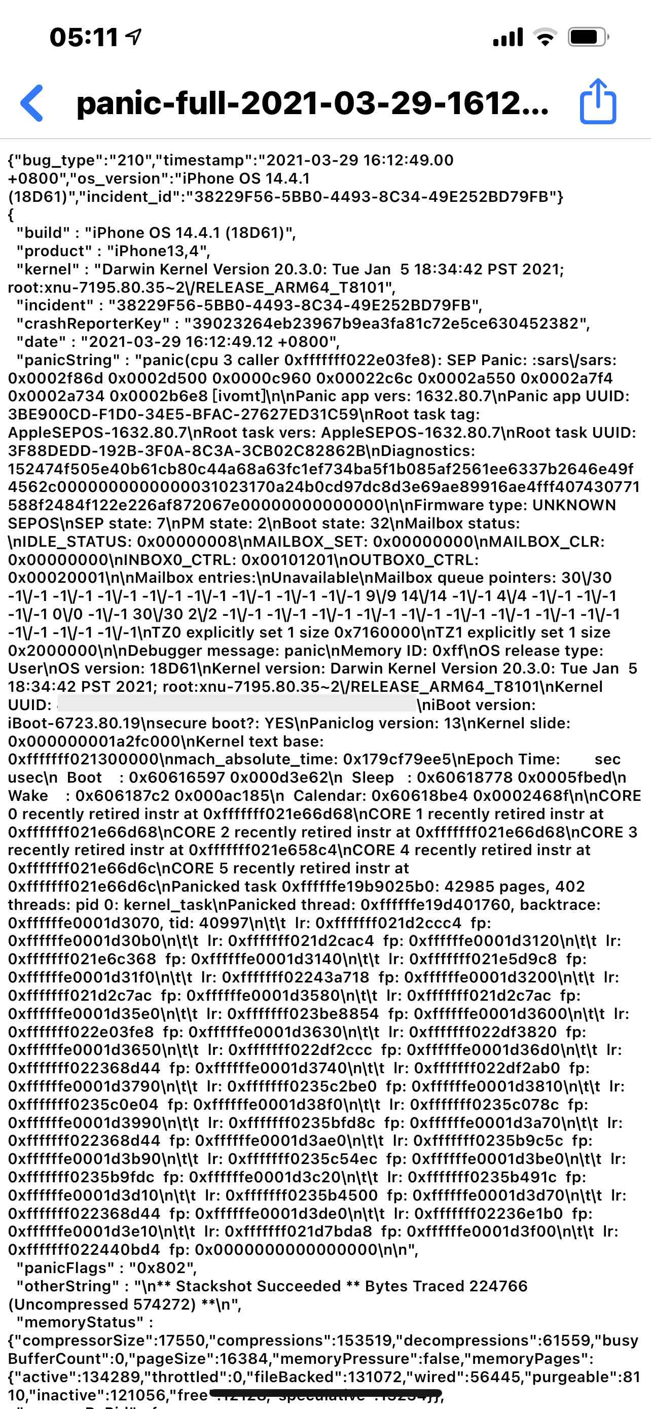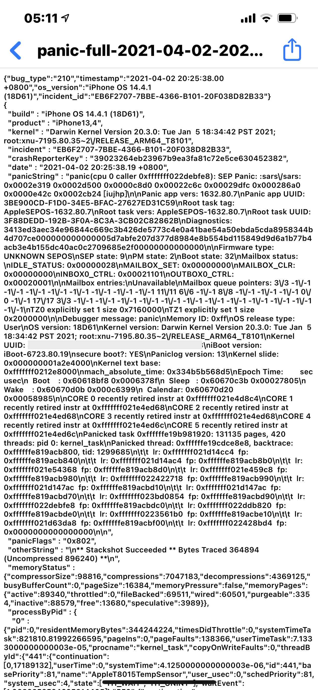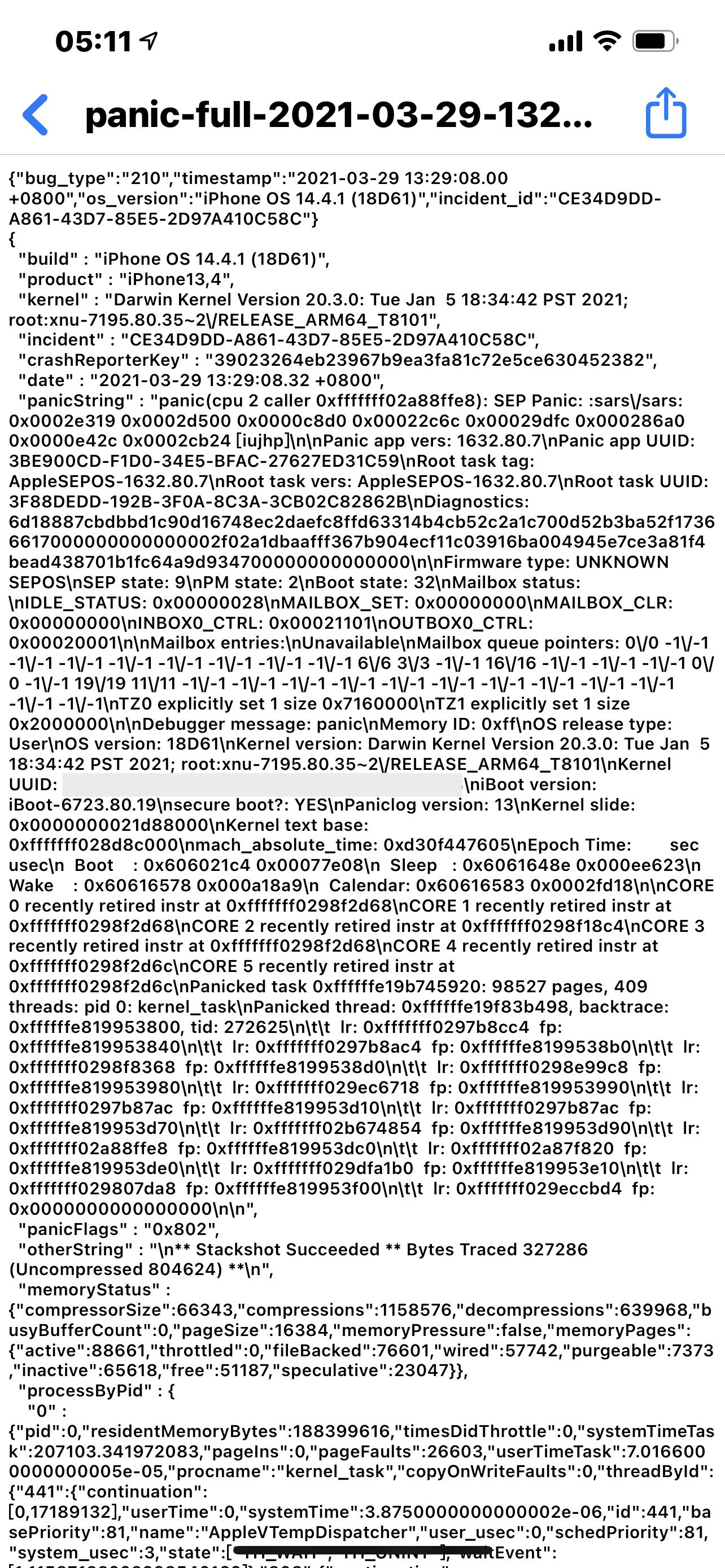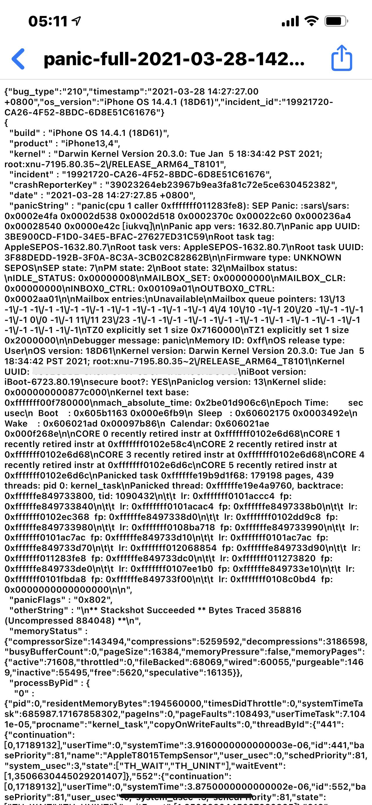 我的手机iPhone12pormax从2月末开始出现自动重启现象,截了几张图,帮忙看一下数据分析
