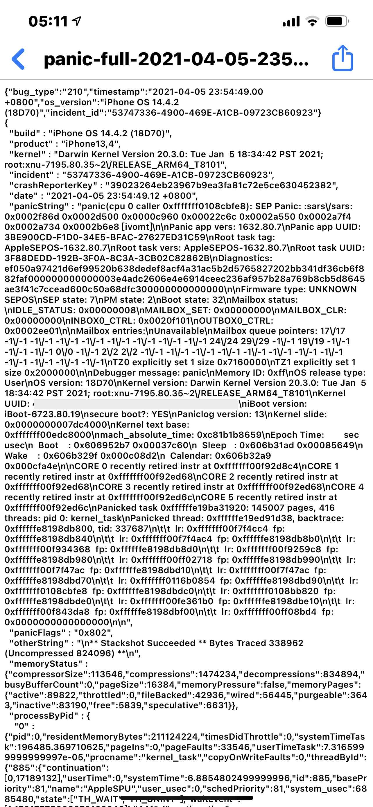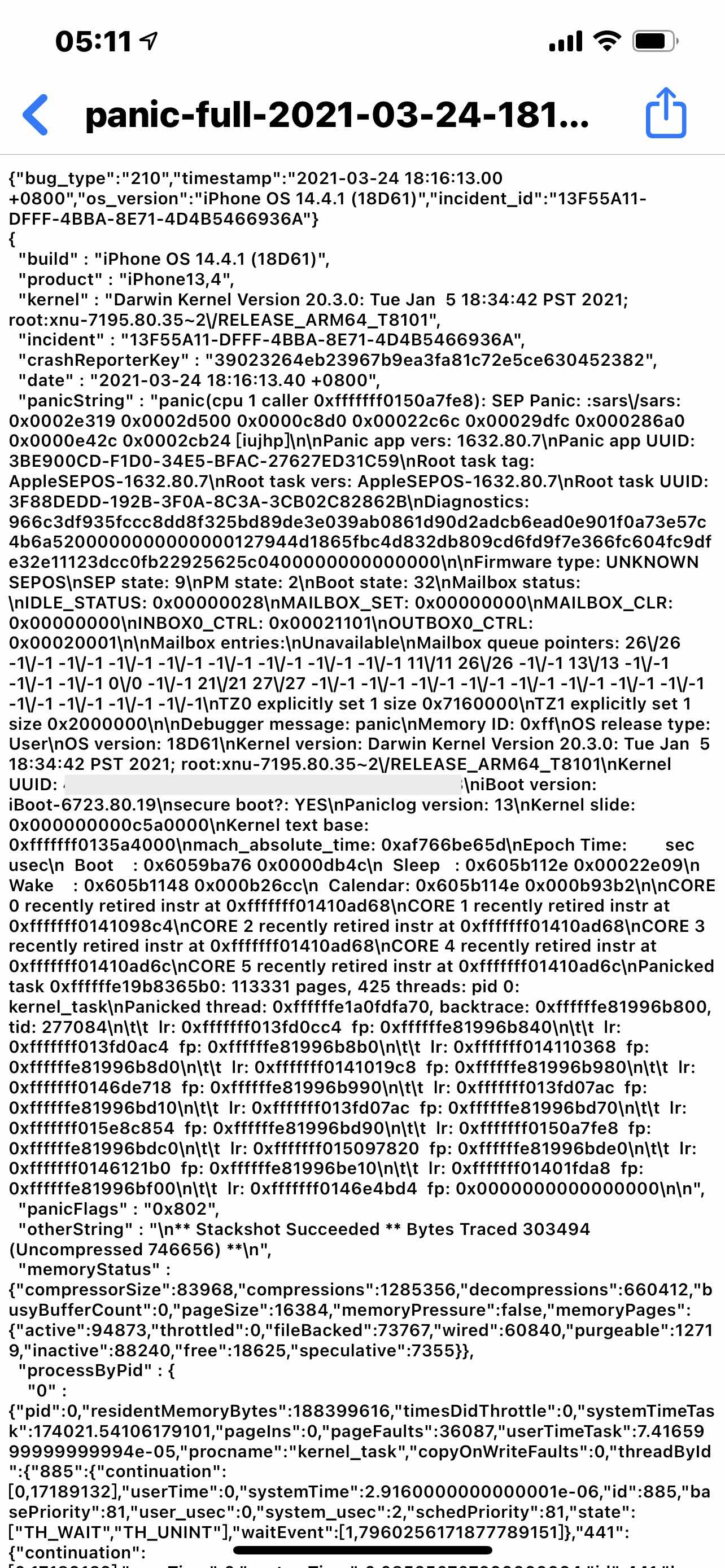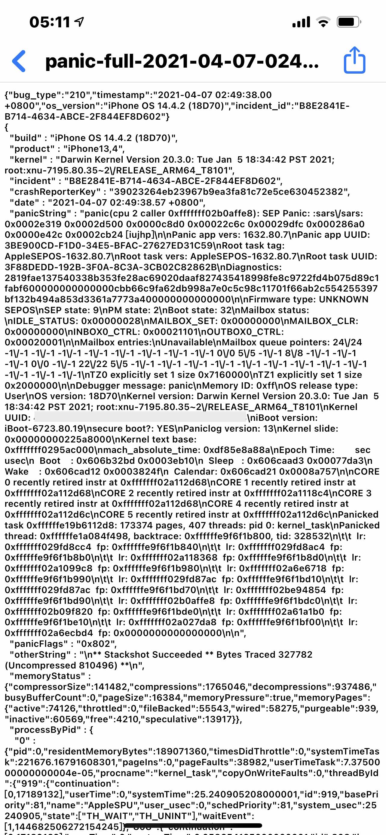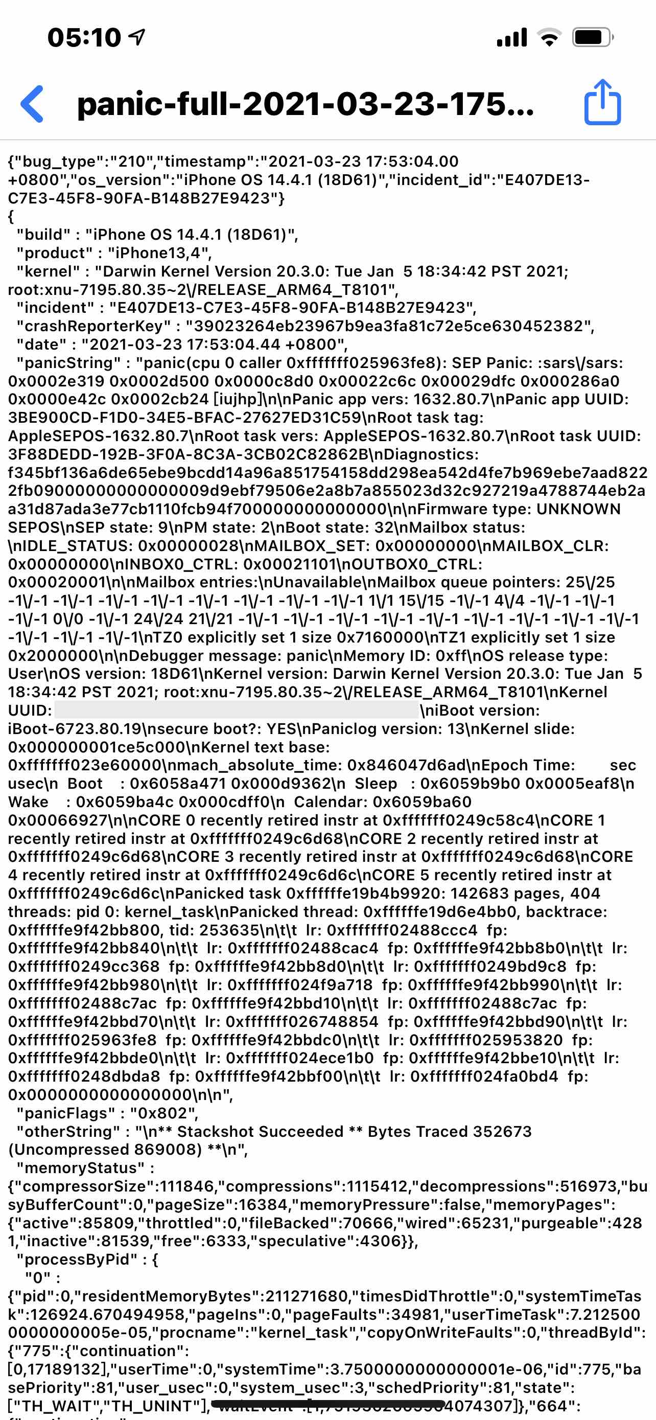 我的手机iPhone12pormax从2月末开始出现自动重启现象,截了几张图,帮忙看一下数据分析
