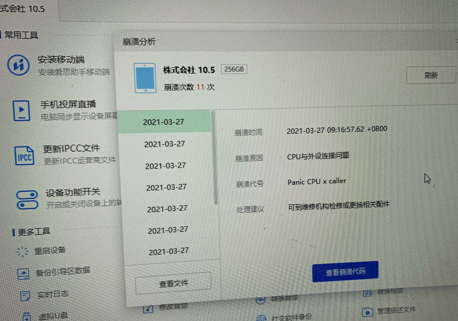 ipad pro 10.5寸,崩溃代号panic cpu x caller