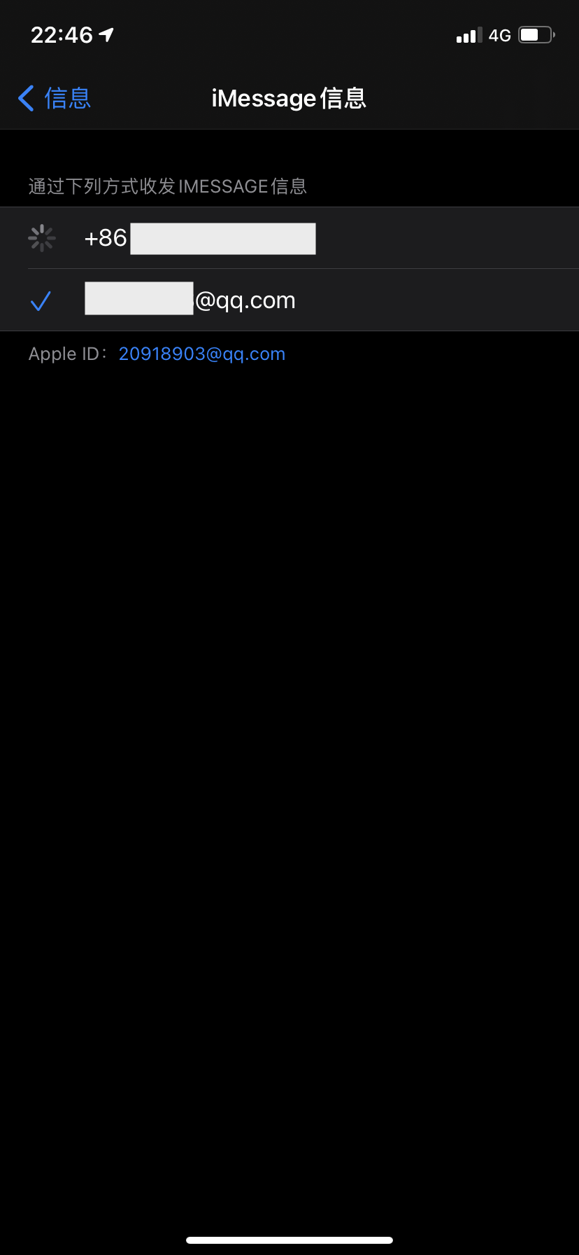 1.在iMessages 界面的接受与发送无法选择手机号码(能看到到前面有个圈始终在转无法选择)