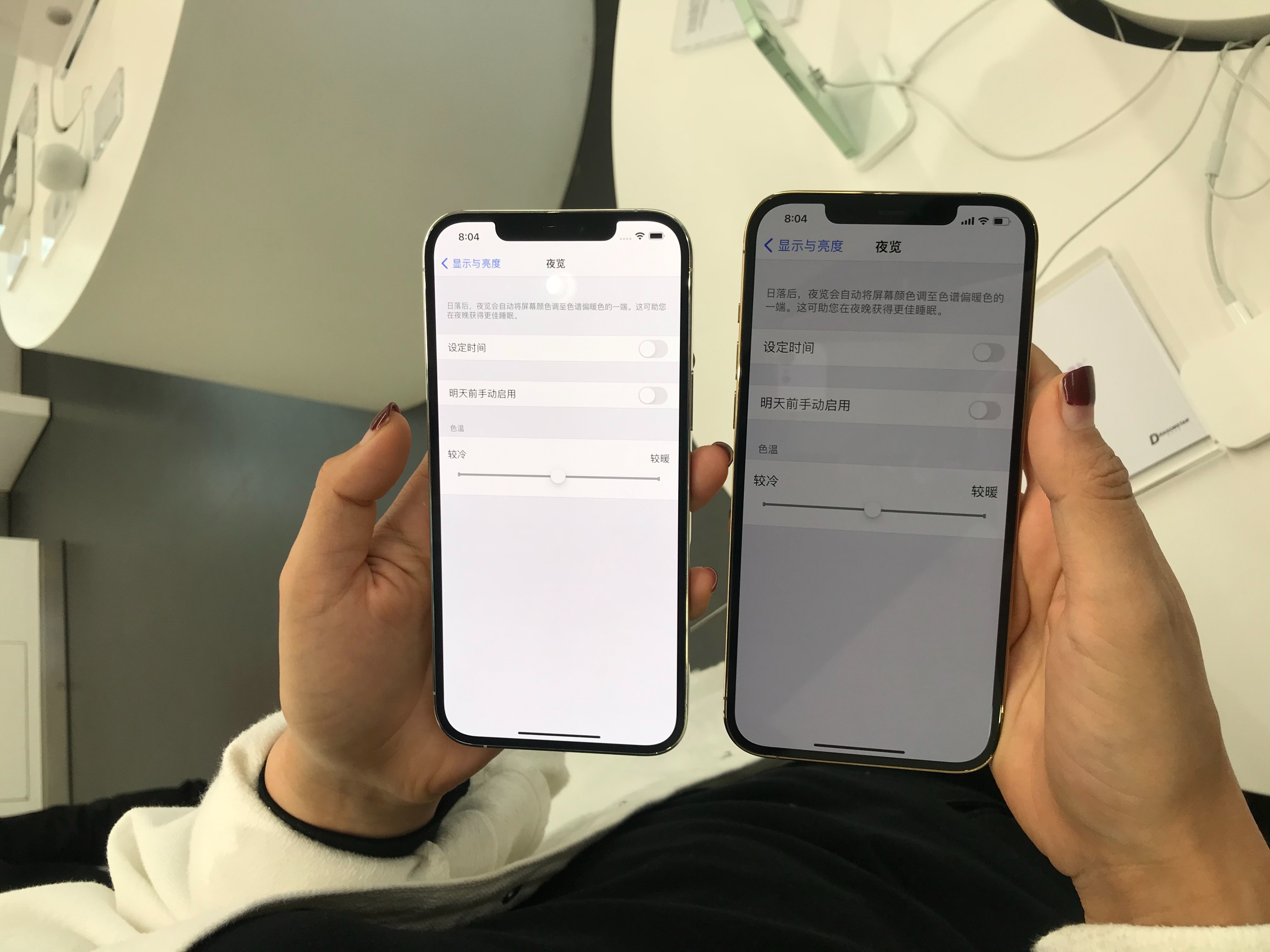 官网购买的手机比实体店内的展示机屏幕暗很多,按照网上多种设置方法都不能调亮。而且在白天出现过屏幕忽然变得很暗,看不清内容,通过开关原彩功能才恢复亮度。