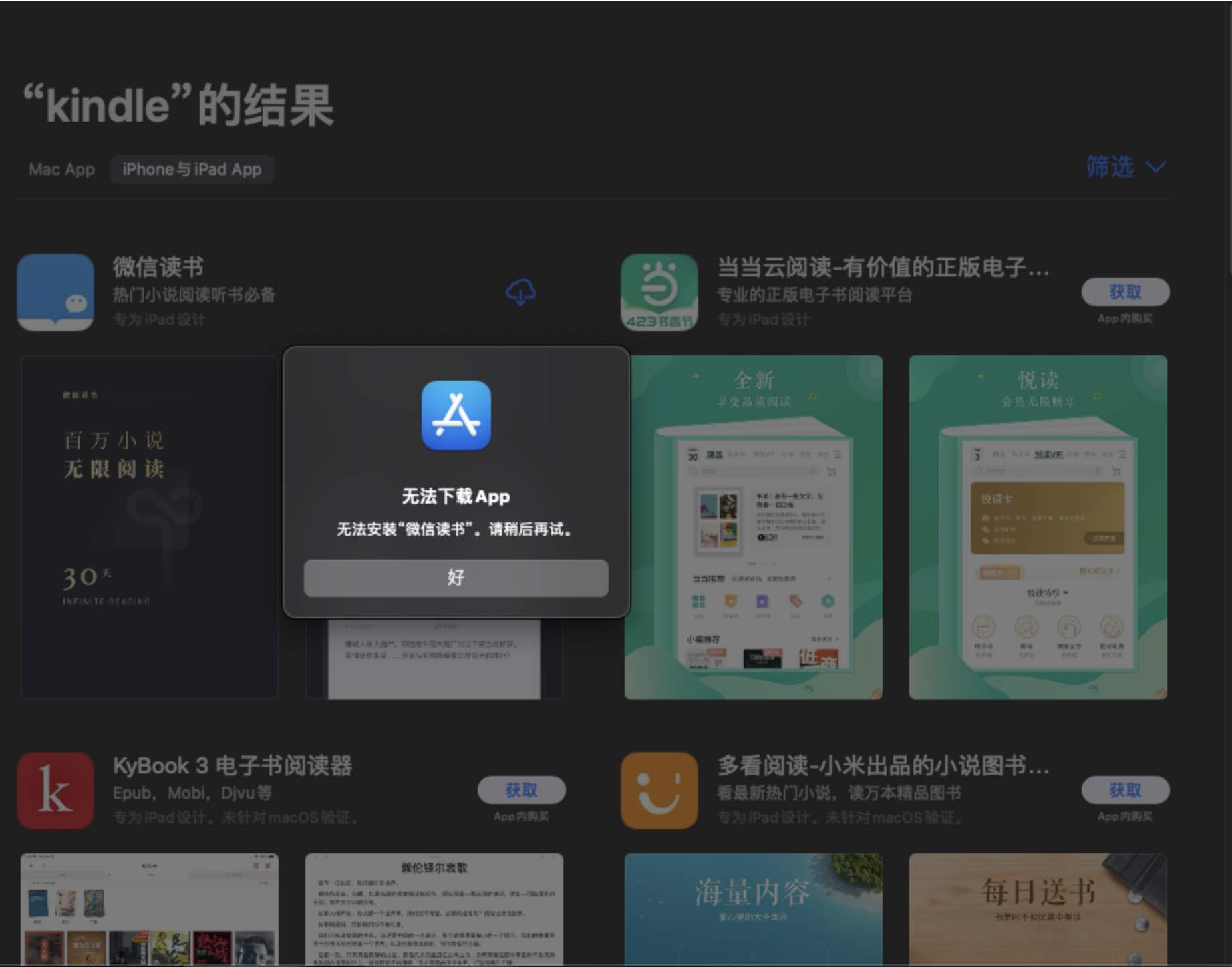 在App Store中无法下载iOS程式,如图所示,所有iOS程式均无法安装
