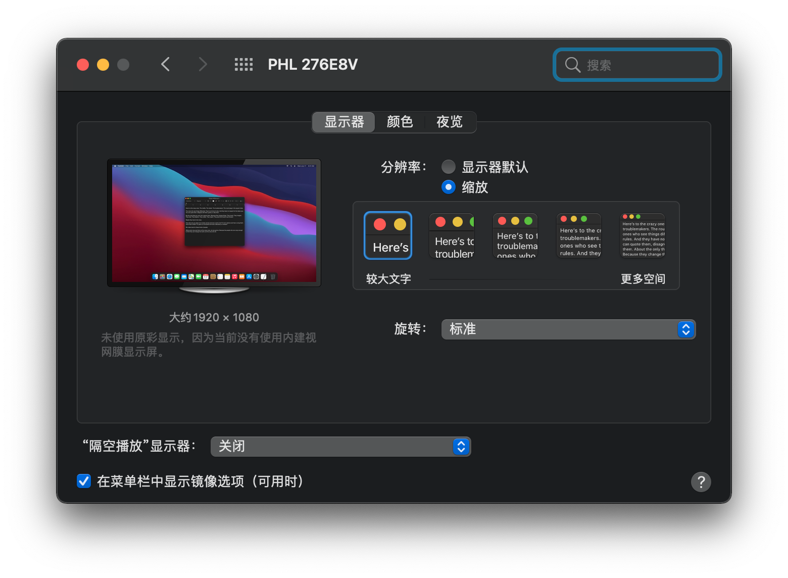 mac在外接显示器的情况下,可以在不调节分辨率的情况下缩放字体和图标大小吗?