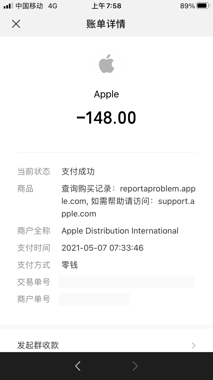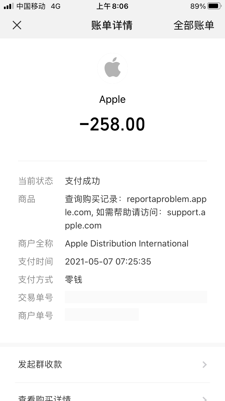 5.如果你的这个的APP没有退款选项,那么后边一定是显示的蓝色框,写着“iTunesstore支持”