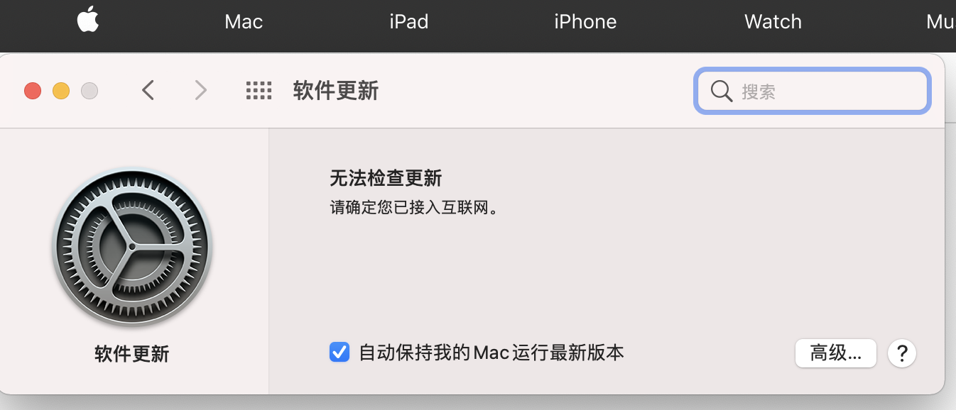 MacOS更新失败提示:无法检查更新,请确定您已接入互联网
