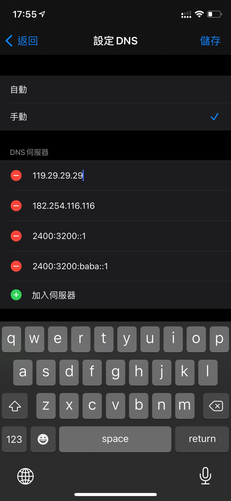 在您连接 Wi-Fi 时,您可以打开「设置」>「无线局域网 WLAN」,点按您已连接的无线网络名称右方的「i」(信息)进入网络详细信息界面。下拉到「DNS」,点按「设定 DNS」,切换为「手动」。添加 DNS 服务器并储存(常用公共 DNS 服务器可参见https://dns.icoa.cn/)。关闭 Wi-Fi 并重新连接 Wi-Fi后,打开 App Store。