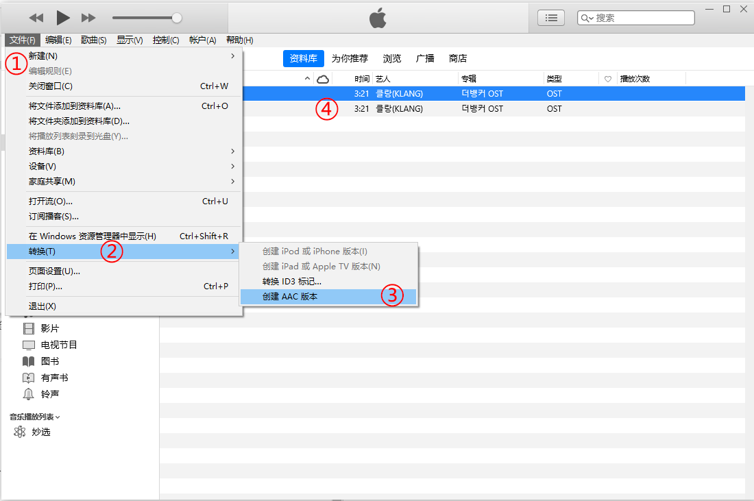④完成后,则 Itunes的歌曲资料库中 会增加一个转换好的音频文件