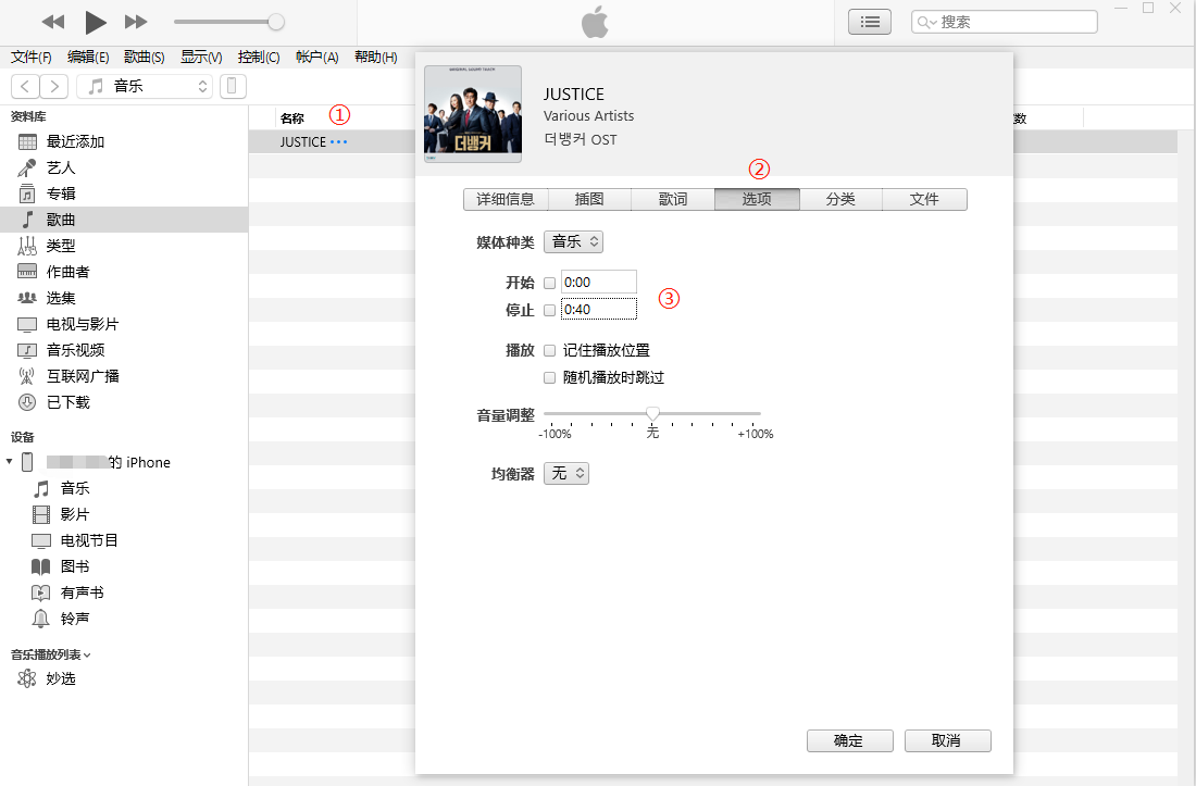 ③选择想要剪辑的起止时长,来电铃声的文件需控制在40秒内,超过则无法导入 Iphone 中。
