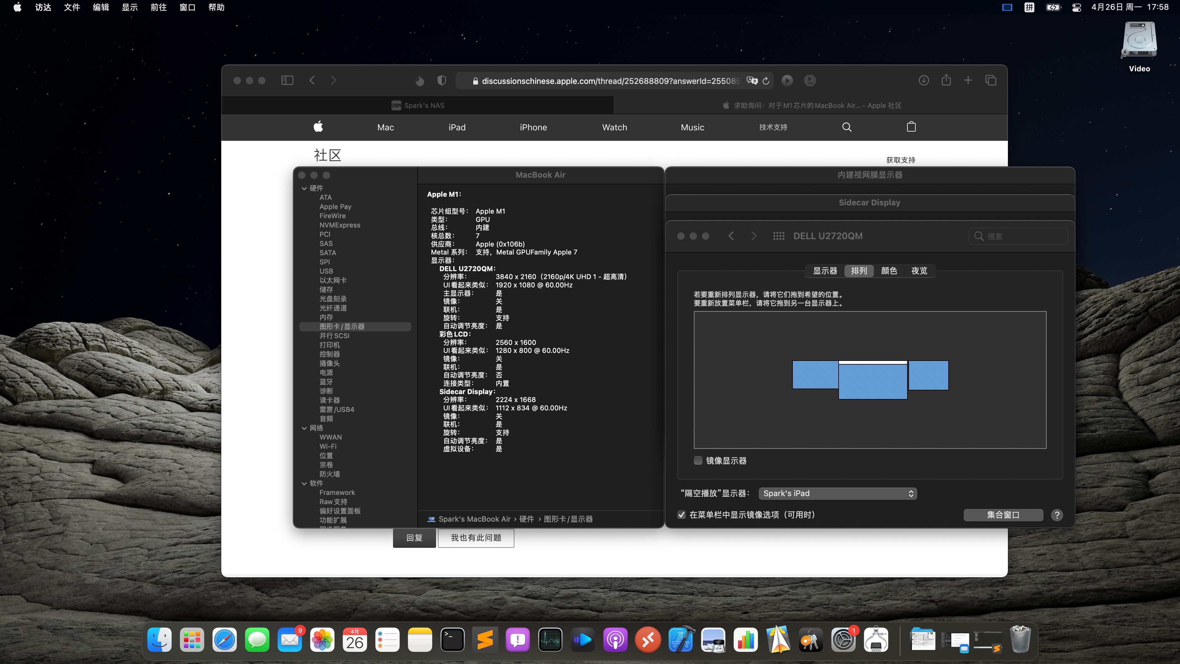 求助询问:对于M1芯片的MacBook Air可否在使用随航功能的同时外接扩展显示器?