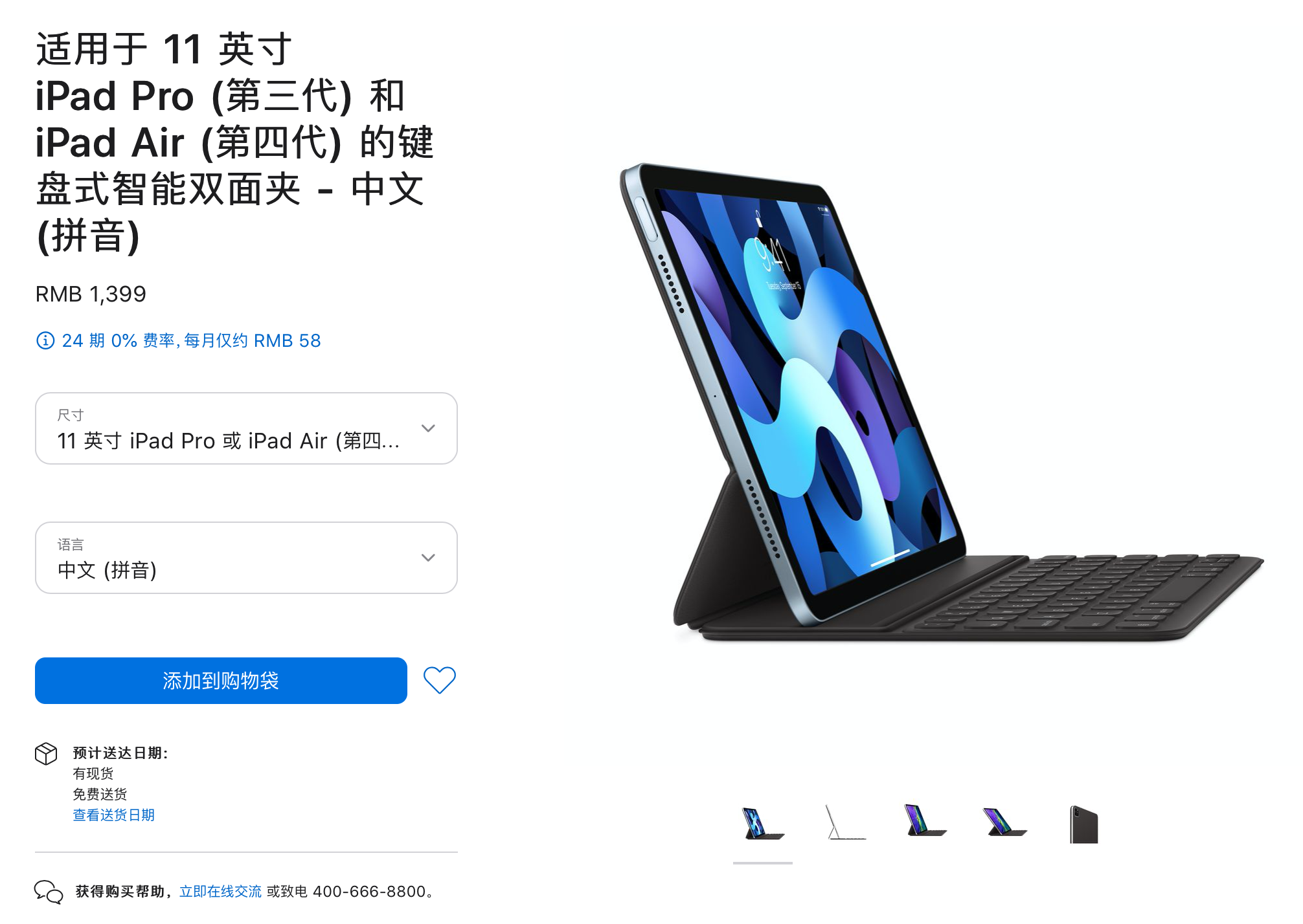 适用于 11 英寸 iPad Pro (第三代) 和 iPad Air (第四代) 的键盘式智能双面夹