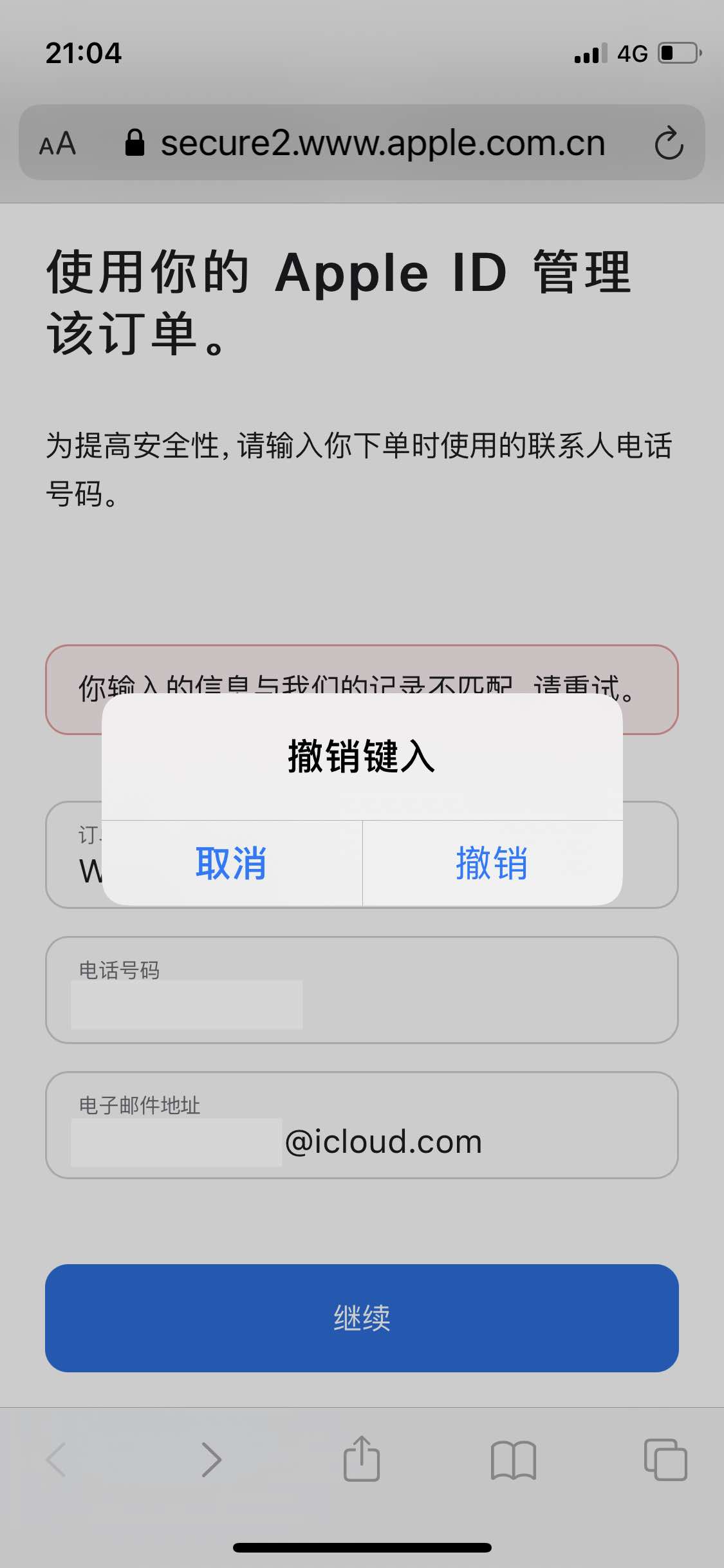 新手机有问题我想查看订单提示你输入的信息与我门不匹配