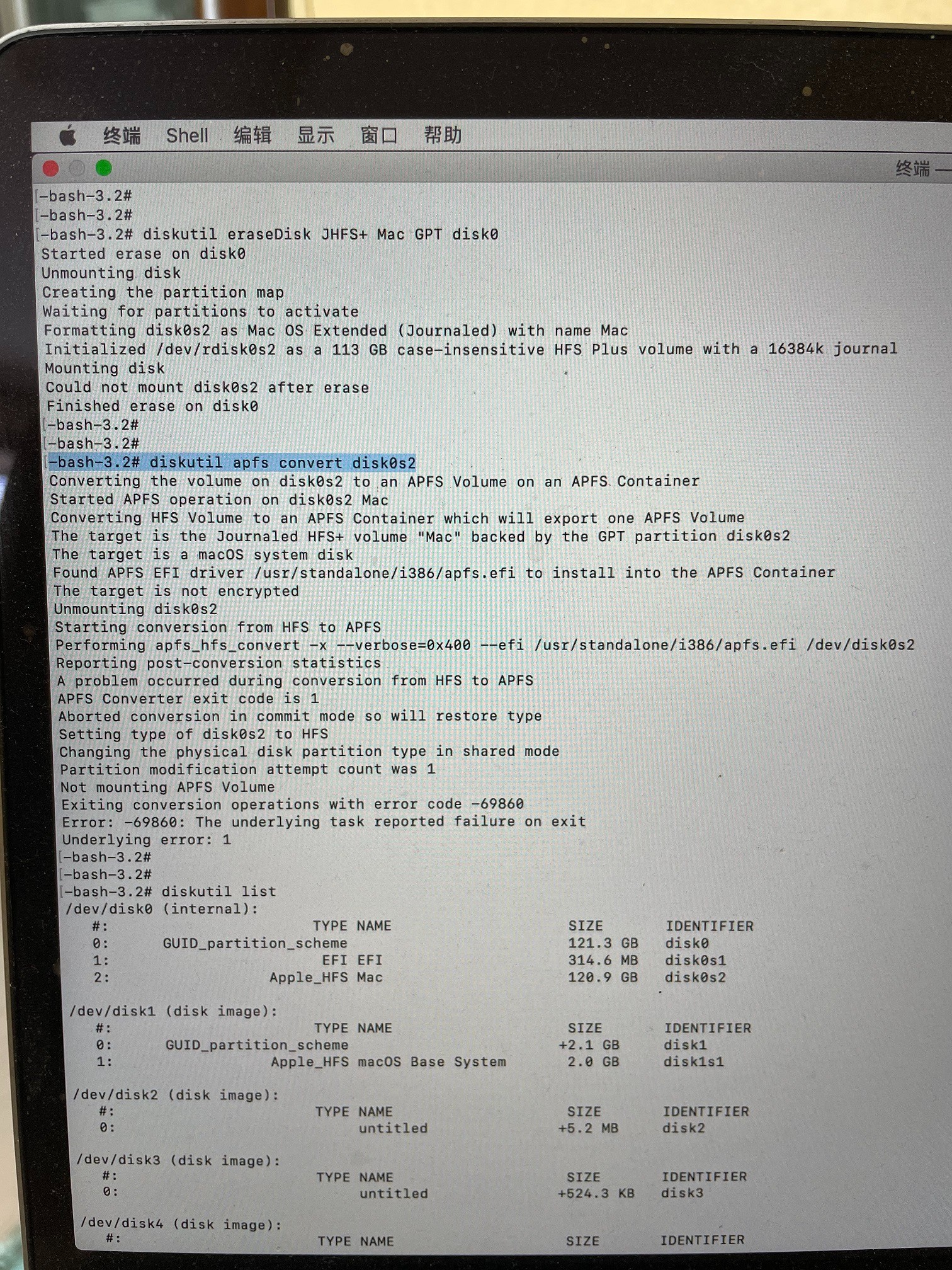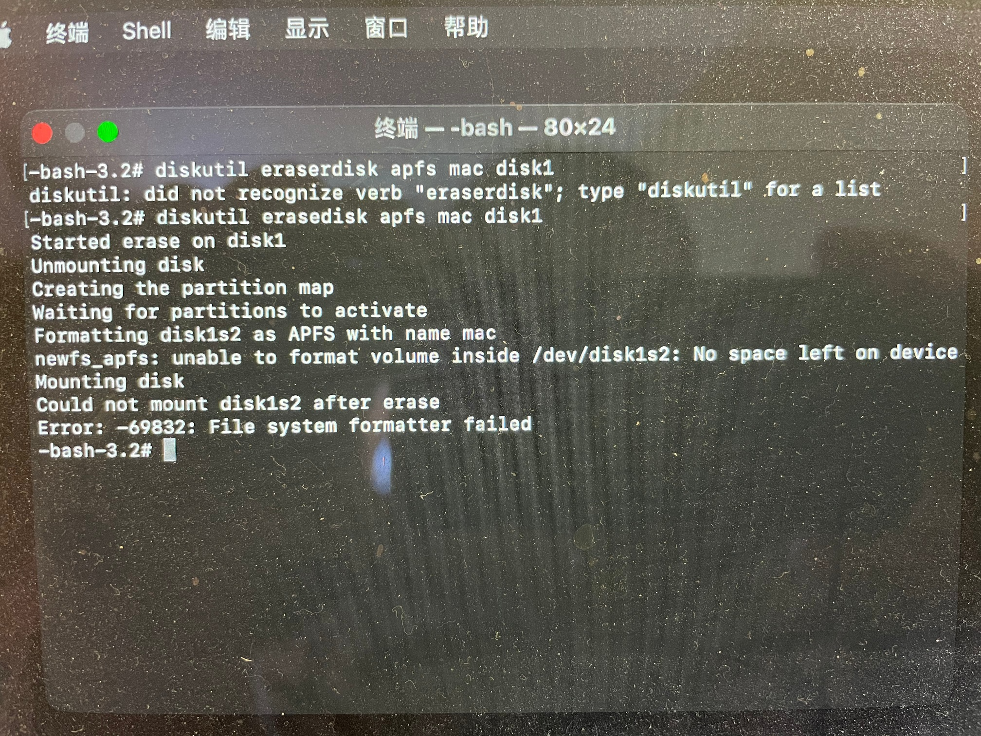 再用 diskutil eraseDisk apfs mac /dev/disk1 还是错误提示,仍然不行