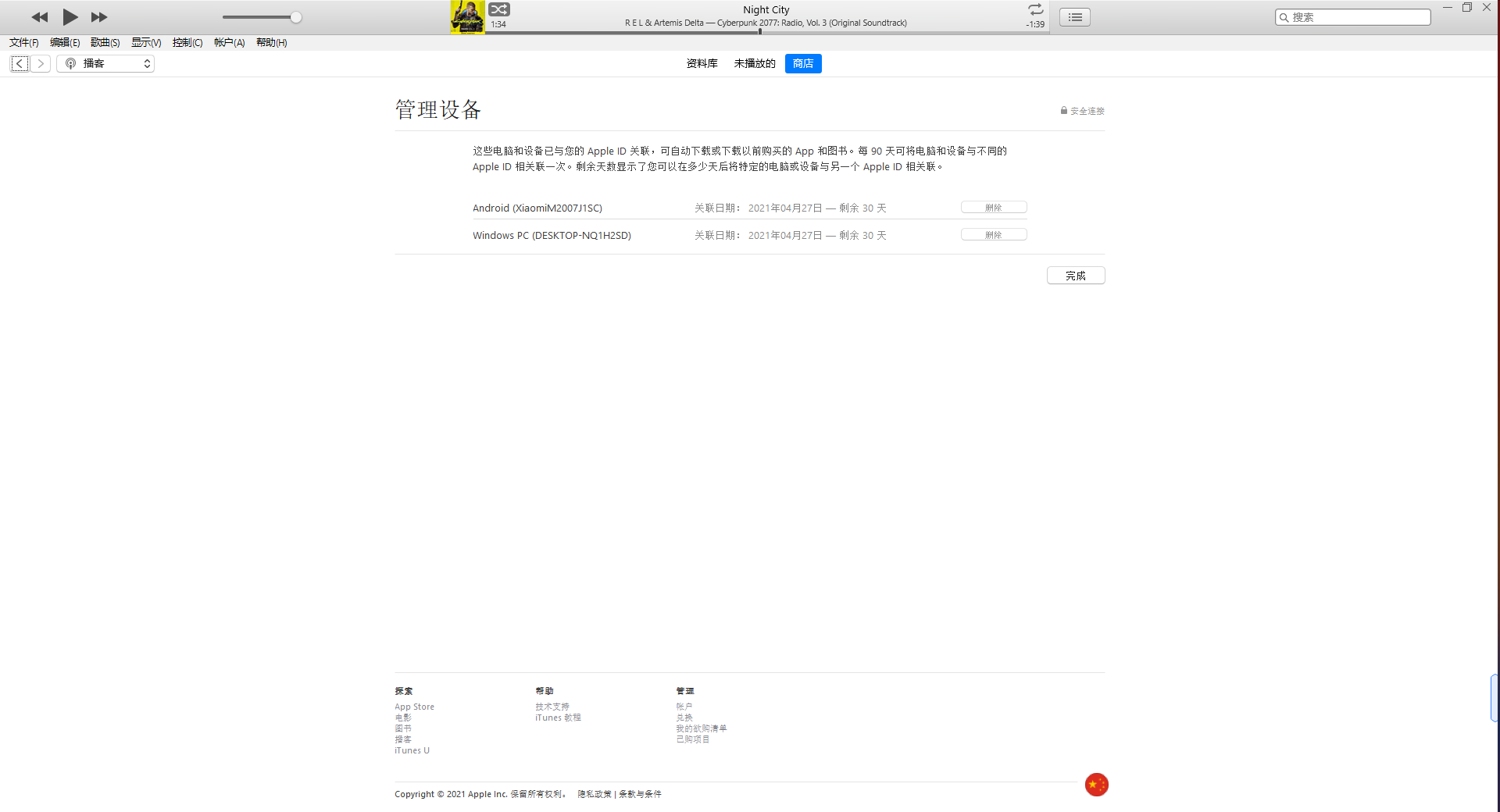 PS:新的设备关联你账户后需要30天才可以删除该设备,而登陆超过90天才能关联其他账户。