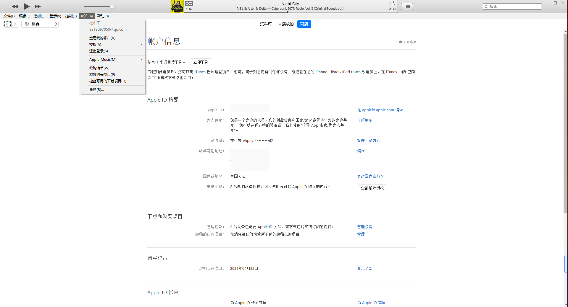 3.成功进入“账户信息”的界面后,可以看到“下载和购买项目”右边有“管理设备”的选项,点击“删除”就可以任意删除账户了!