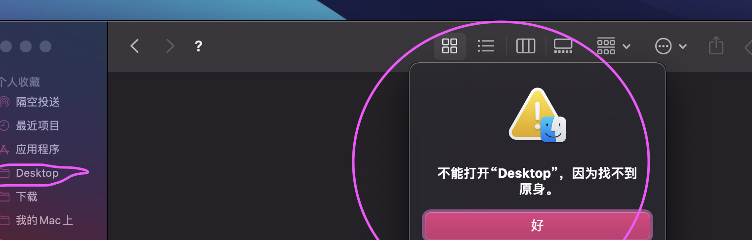 小白求助:Mac(2020)中的访达左侧列表原来中的“桌面”变成了“desktop”,并且找不到原身