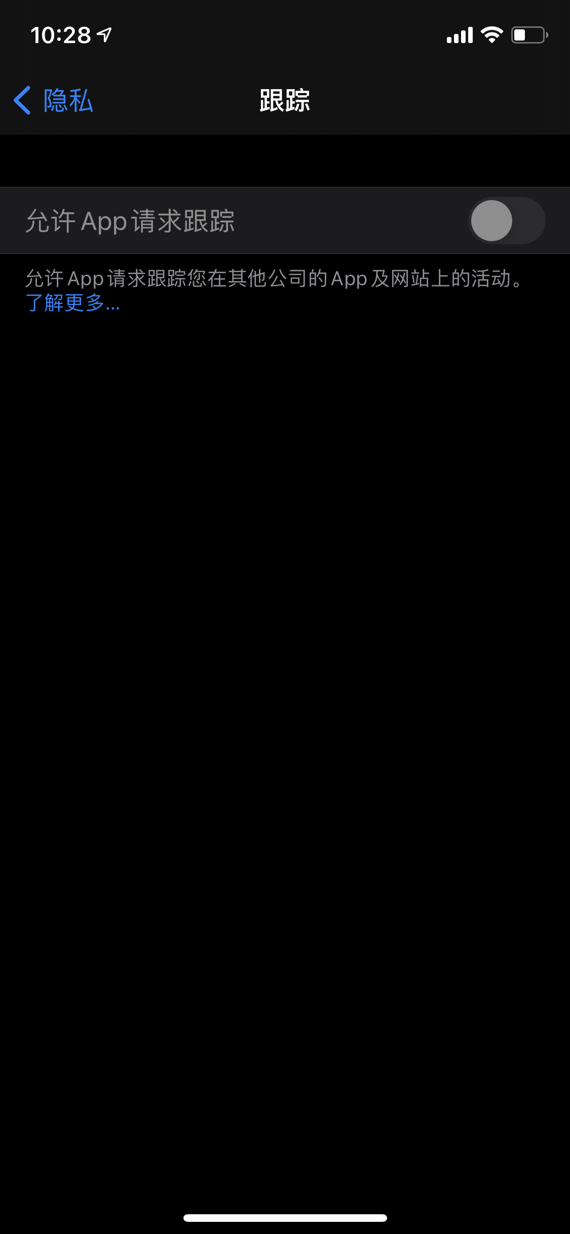 说明了开发者如果没有更新隐私政策 目前就无法使用允许跟踪。