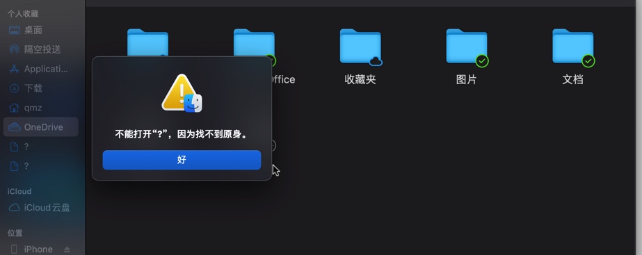 mac访达侧边栏不能打开“?”,因为找不到原身
