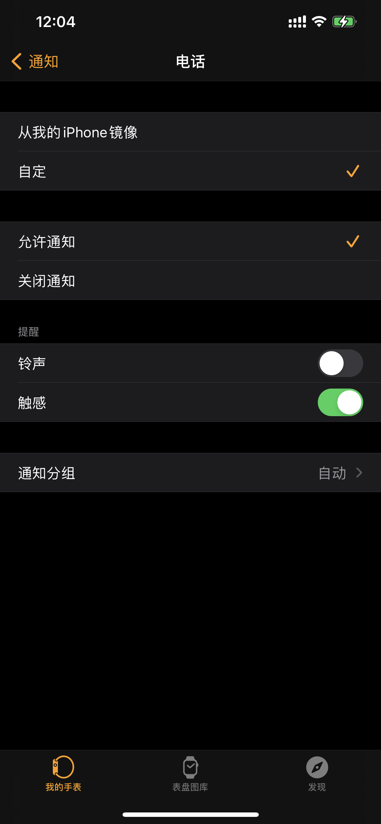 我的watch4(MTX32CH/A),7.5(18T5546F),在手机上手表设置中设置了取消声音提醒,只保留震动提醒,没有开静音模式,但是来电来是只有声音提醒没有震动提醒;如果设置成静音模式同时开起震动提醒,就没有声音提醒但还是没有震动模式。