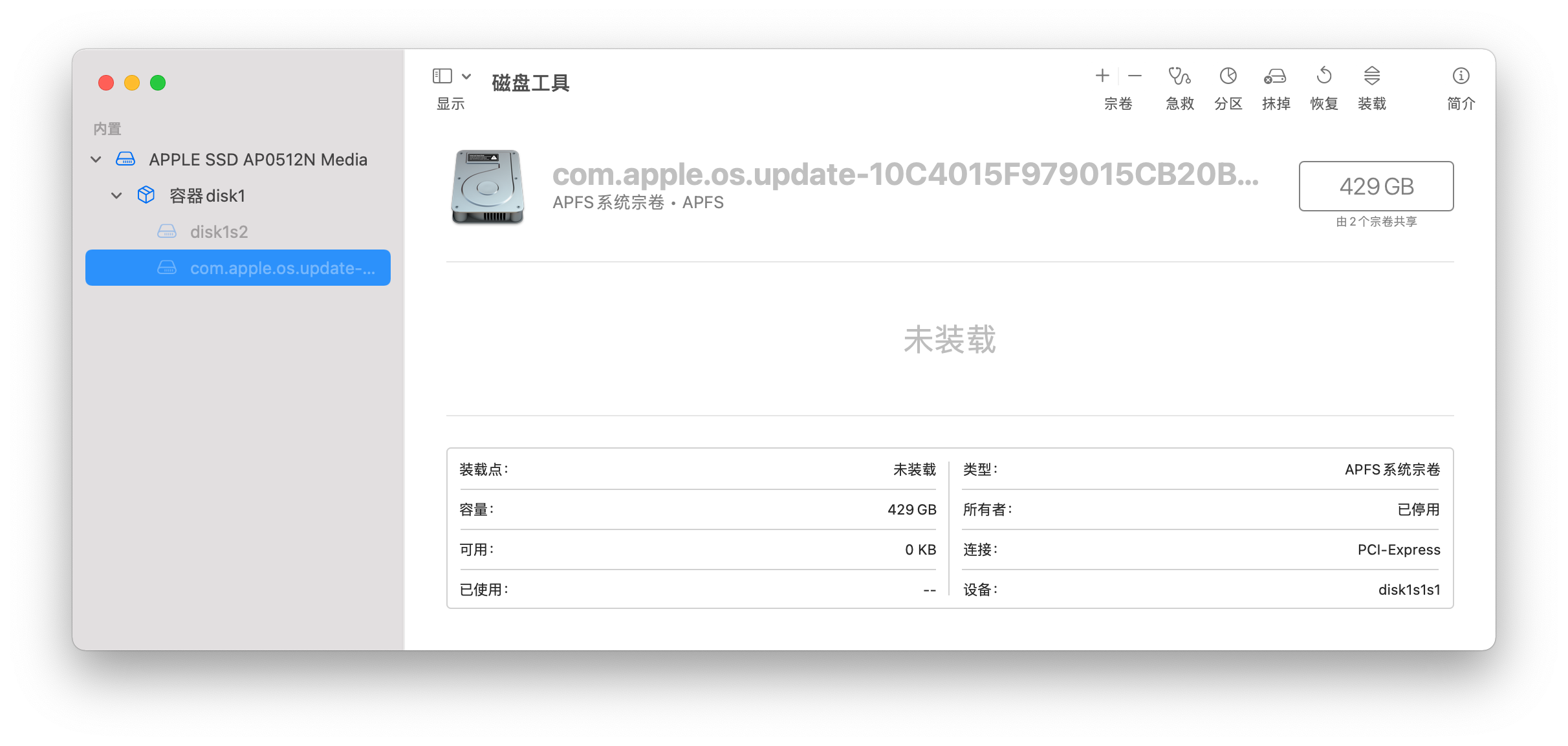 最近更新big sur 11.3的时候,系统总是提示“下载错误”,然后发现磁盘工具里面出现了如下异常显示: