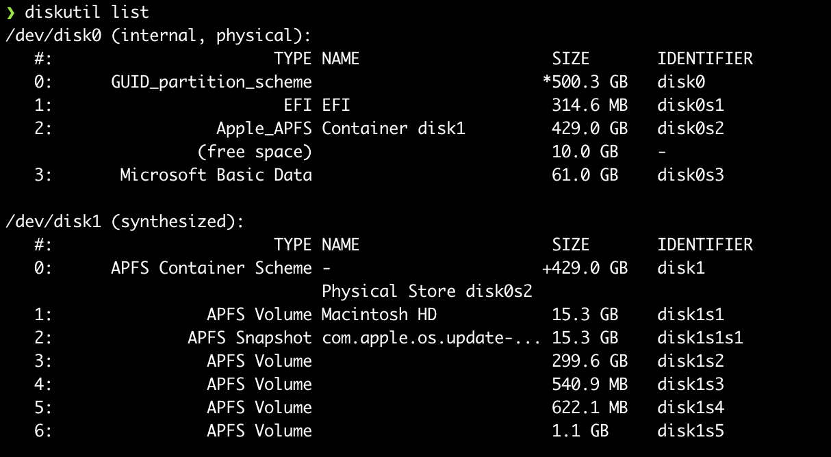 +-> Volume disk1s1 CDE6971B-6043-4C36-9D67-7132B5DCCA06