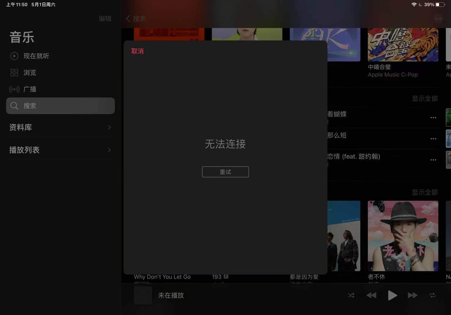 看一下是否允许了 Apple music 访问 WiFi或者 蜂窝网络?