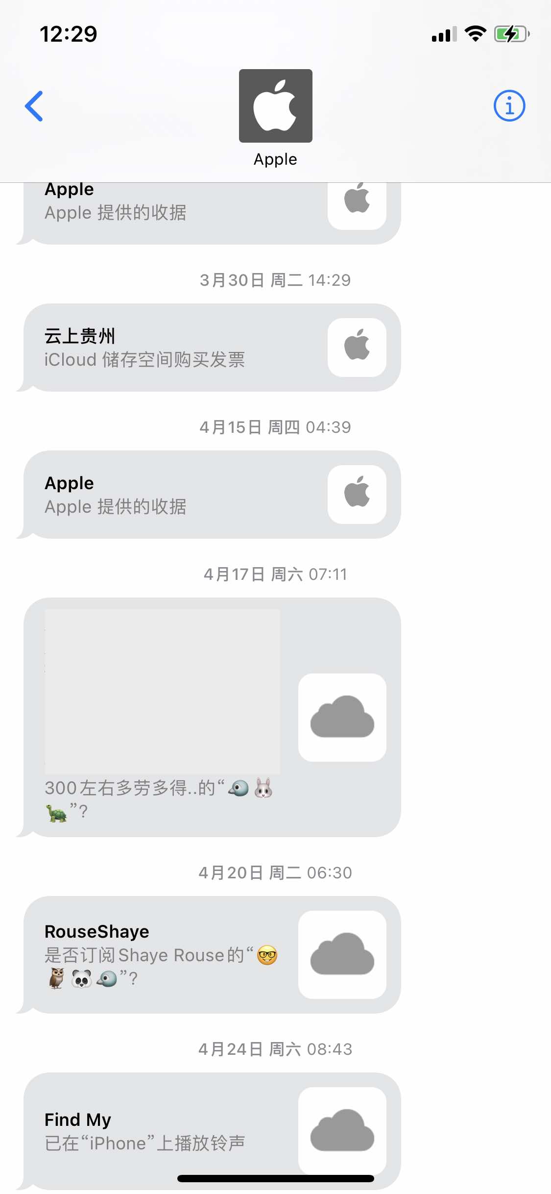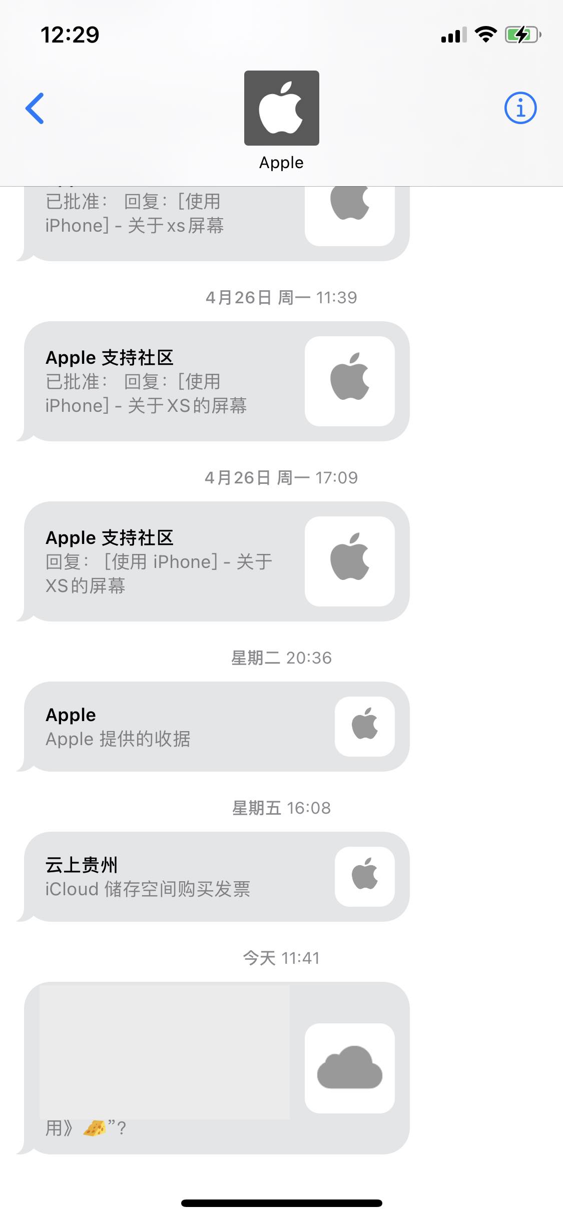由于楼主的 Apple ID 是一个电话号码的 ID,没有邮箱,所以会通过信息收到这个通知。这类信息叫“来自 Apple 的信息”。