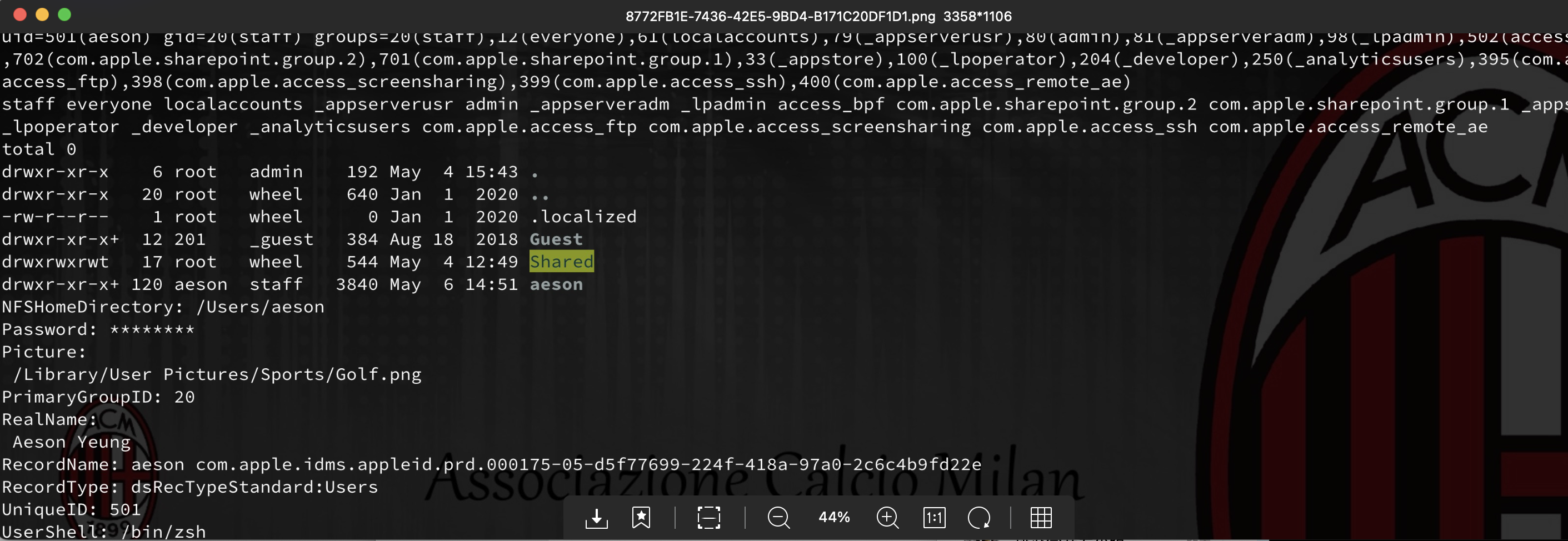 id; groups; ls -la /Users/; dscl . read /Users/$(id -un) | awk '/^NFSHomeDirectory/{p=1}p'
