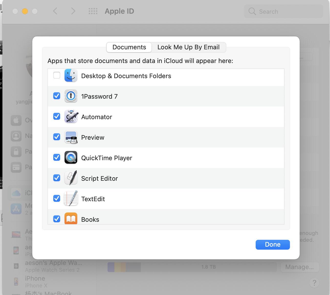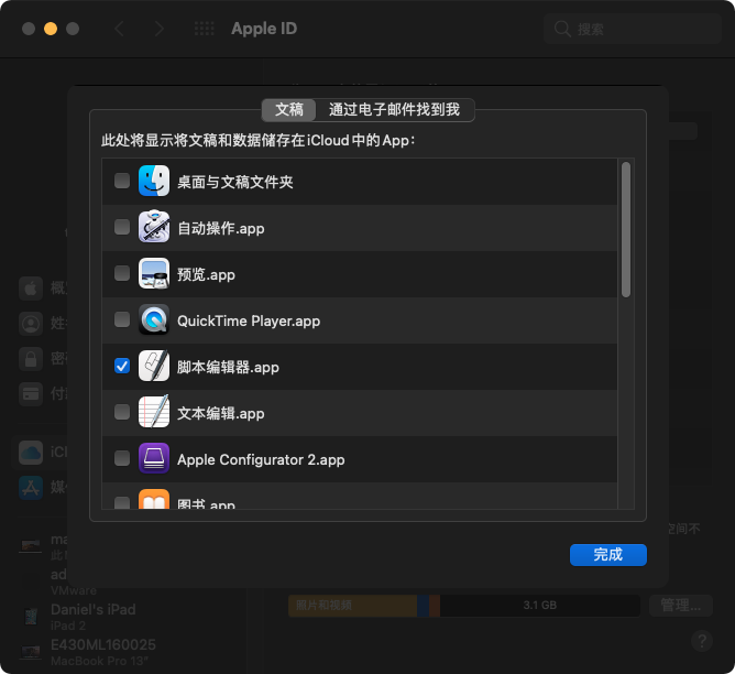 1> 系统偏好设置 > Apple ID > iCloud 云盘, 如下图: