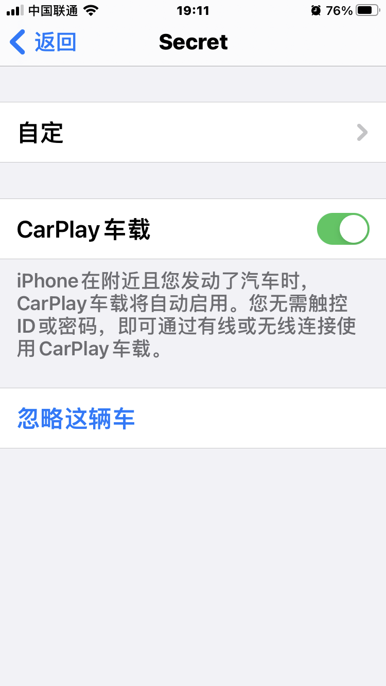 设置——通用——CarPlay车载——Secret——CarPlay车载(开关按钮)