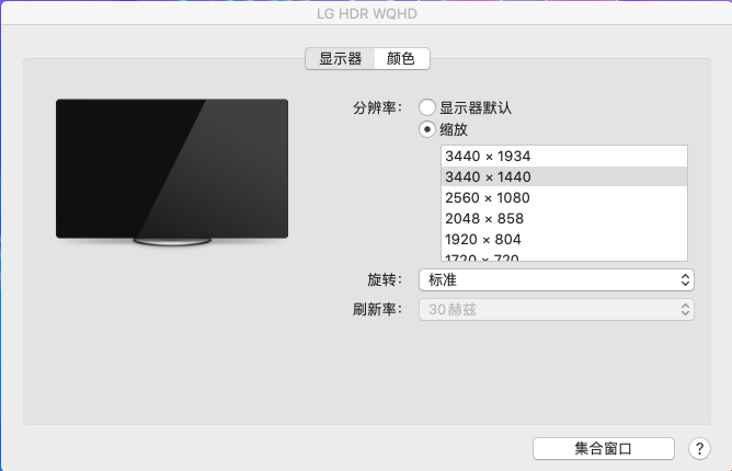 使用typec转DP的方式外接LG34WL85C显示器,刷新率锁在30hz,无法修改。