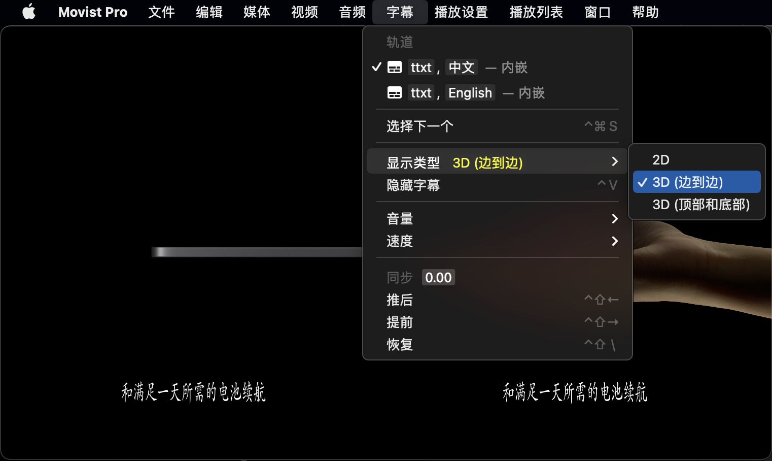 我自己使用的 Movist 播放器支持这一调整,不过我自己现在已经找不到 3D 电视了,3D 电视在大约八年前很火,现在基本销声匿迹了。