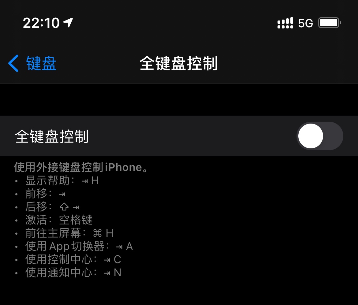 我也是用键盘的时候就不想碰屏幕。一开始也在想是不是有键盘快捷键,发现其实仅用键盘也行,打开全键盘控制(“设置”>“辅助功能”>“键盘”>“全键盘控制”),然后就可以使用 Tab + C 来呼出控制中心,不过全键盘控制会在 UI 上带来一些变化我不太喜欢。