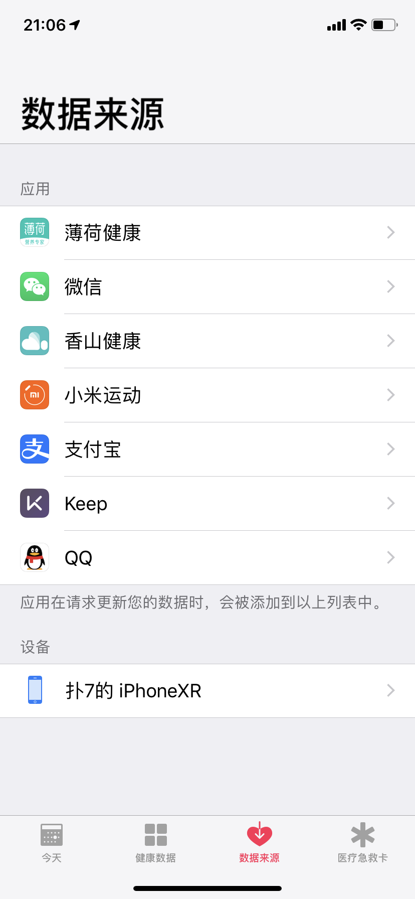 健康中数据来源一项设备是否可以添加?之前设备还有手环现在不知道怎样添加了