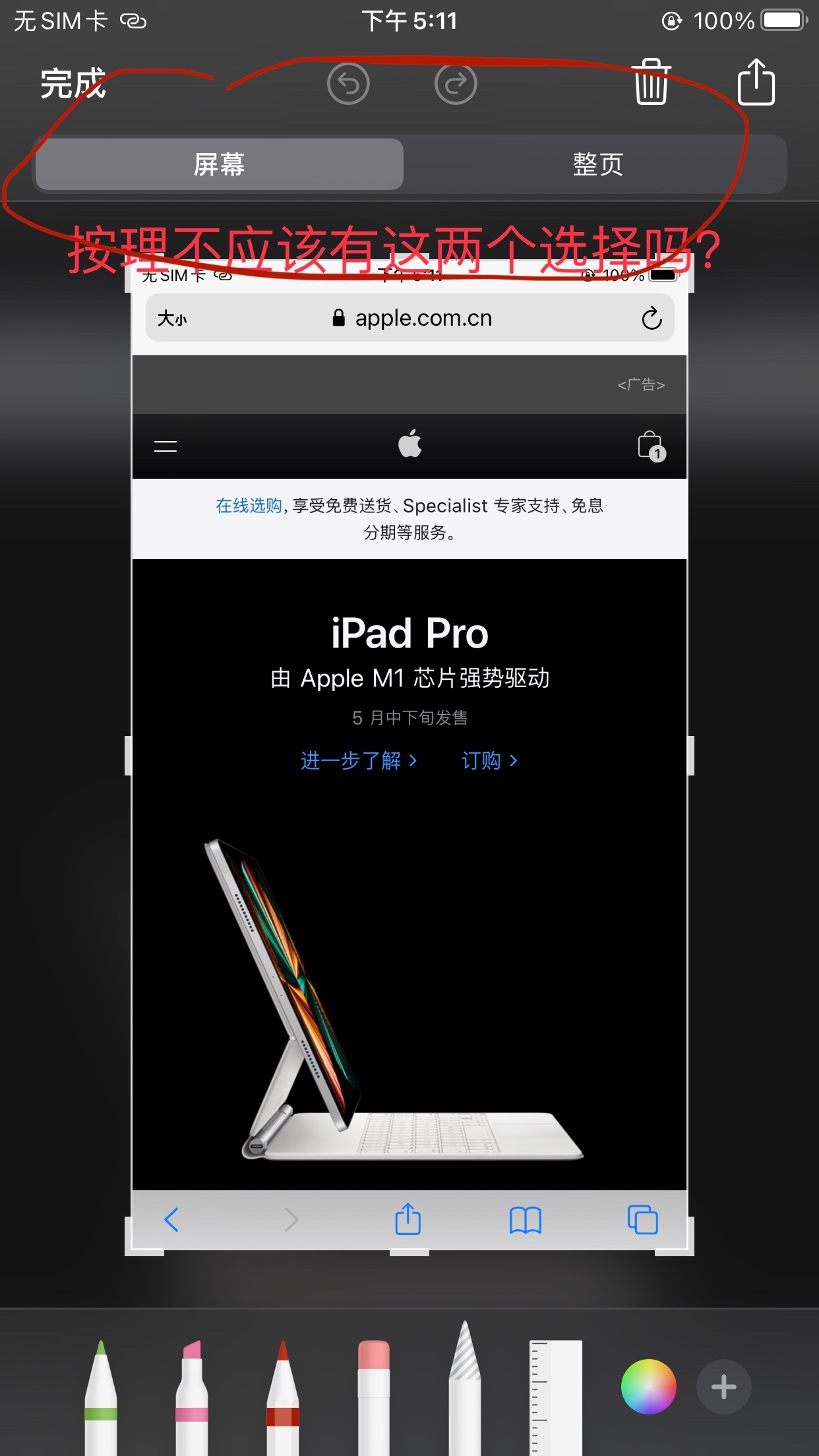 我也遇到了这种问题。我是ipad的Safari打开的网页截图突然没有这个选项了,我以前一直是截图➡️整页➡️保存整个pdf的,今天不知道为什么突然截图页面就没有这个选项了。一样的网站,我拿iPhone就可以。