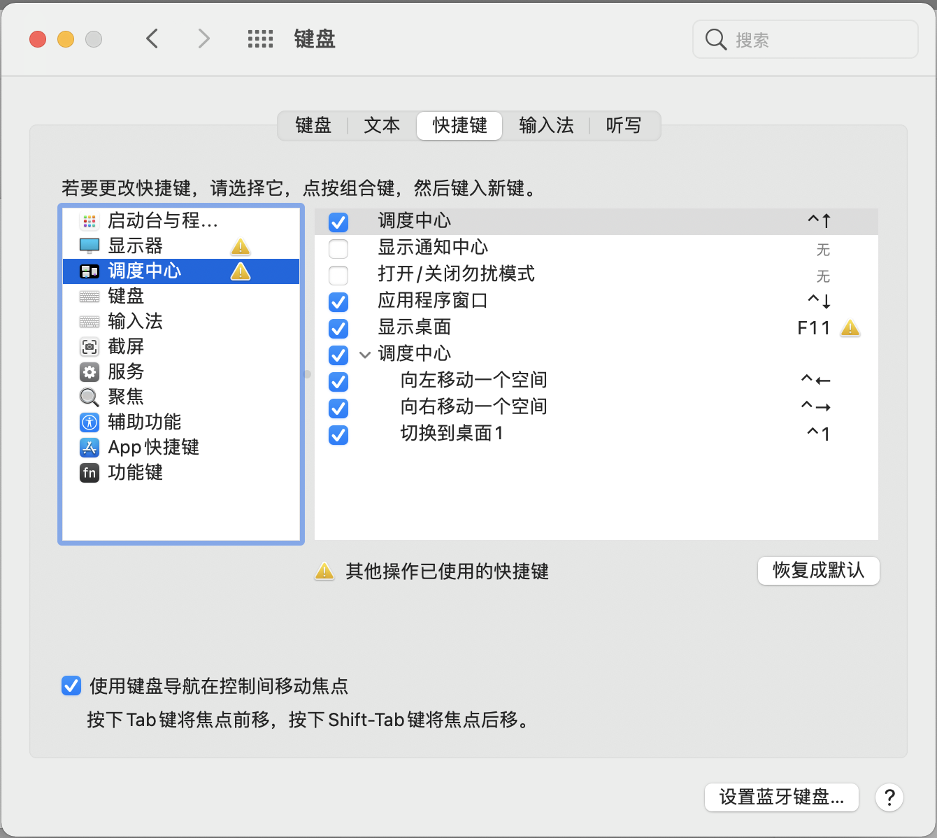 切换桌面的快捷键为什么只剩下切换到桌面1的快捷键?