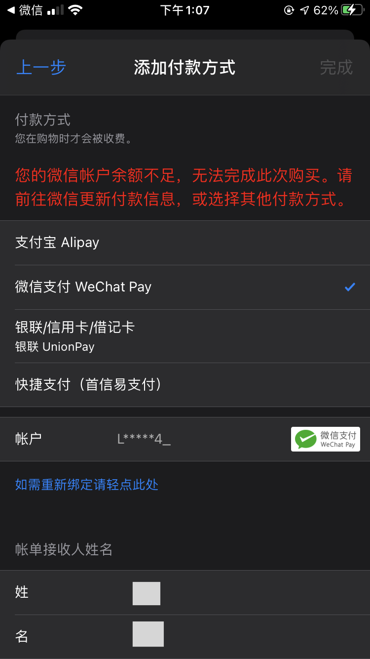 您不妨联系Apple支持帮您确定下具体是哪方面导致原由支付方式不能用了.