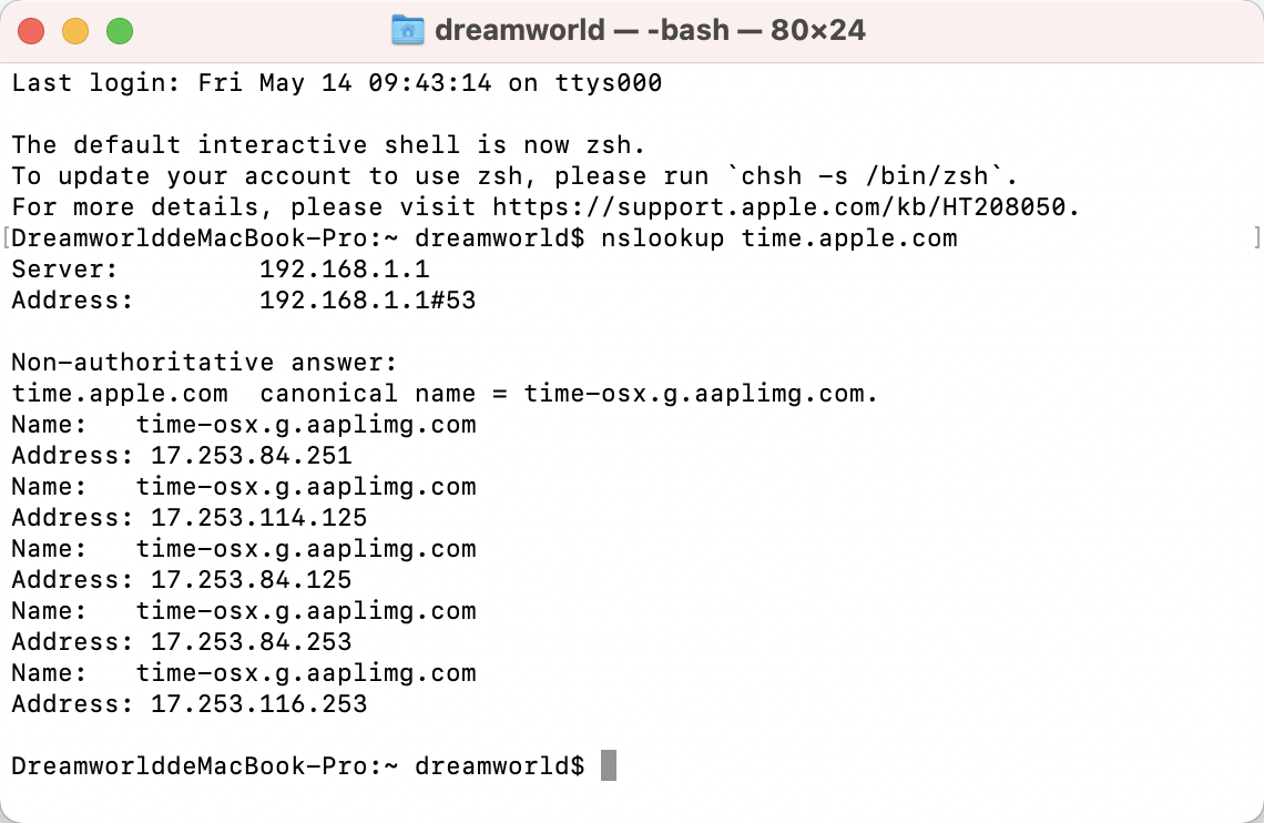 nslookup time.apple.com