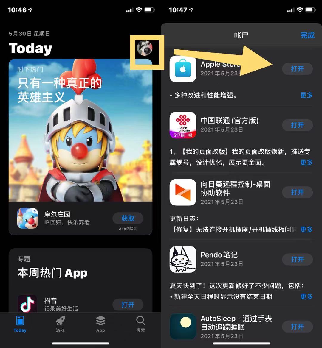 问题被标记为 排名最靠前的回复 以下用户的用户个人资料: PeterLee0991 PeterLee0991 用户级别: 级别 6 17,099 积分 2021年5月29日 下午7:51 回应 handsomepan 1 打开App Store2 点击右上角头像3 之后往下拉 就可以看到能够被更新的APP 回复 链接