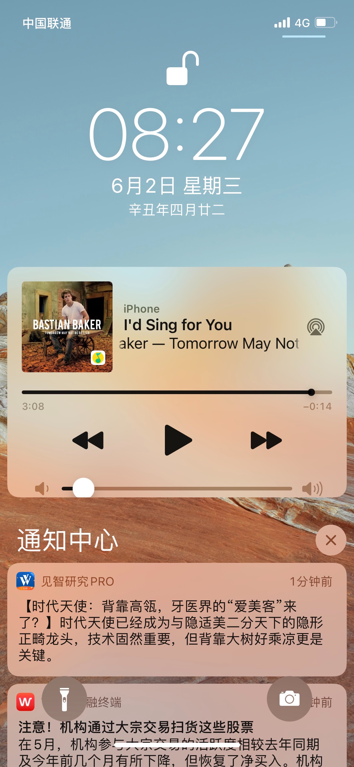 Apple Music或是QQ音乐在播放时,下拉菜单和锁屏界面显示的控件异常,下端显示不全
