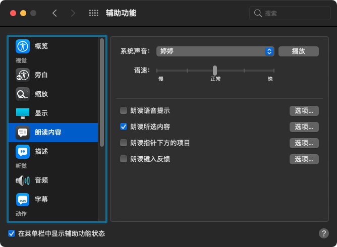 问题被标记为 排名最靠前的回复 以下用户的用户个人资料: tonyfromcalgary tonyfromcalgary 用户级别: 级别 6 16,084 积分 2021年6月2日 下午6:34 回应 aarontsoihk 朗读文字的部分,应该不是 Siri 负责,而是在 系统偏好设置 > 复制功能 > 朗读内容 回复 链接