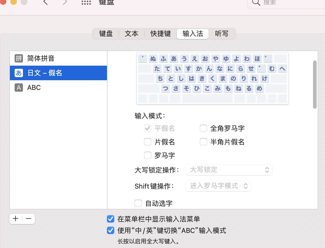 mac pro。 日文输入法, 按下一个键就代表一个假名 ,怎么改成按键罗马音拼日语假名