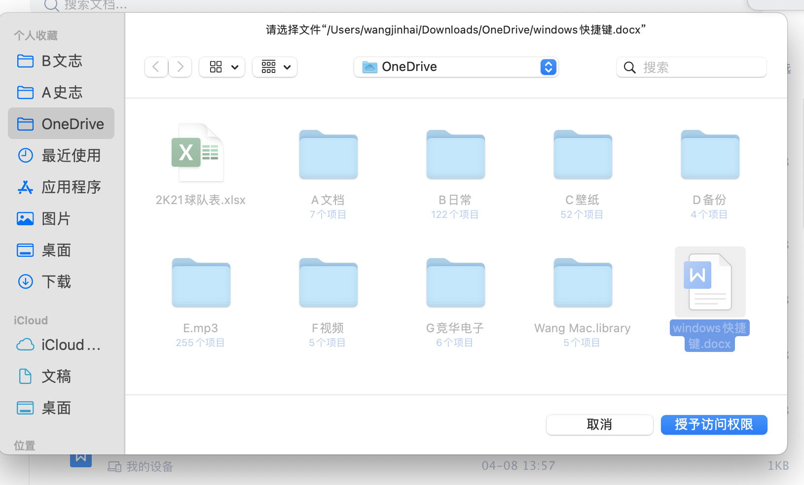 不能打开 Download 下面的 OneDrive 里面的文件;没有【文稿】和【桌面】选项