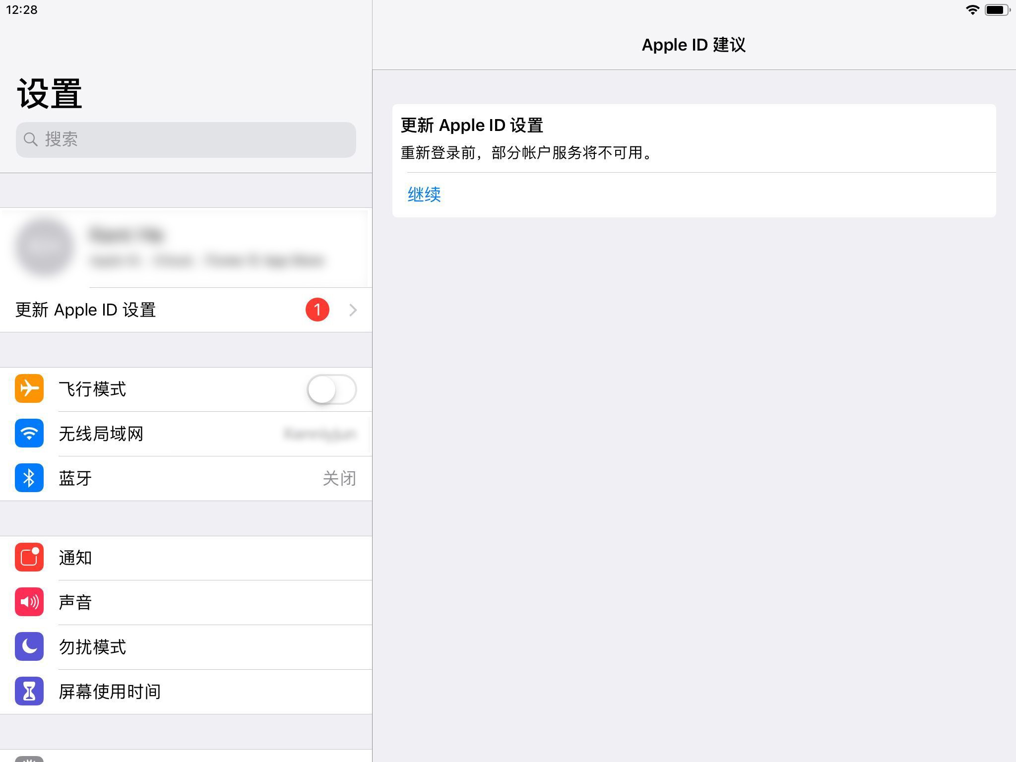 -将刚刚输入过密码的设备息屏放一边,按上面步骤消除另一台设备的红点提示。刚刚消除红点的设备又立刻出现【更新apple id设置】的提示红点。