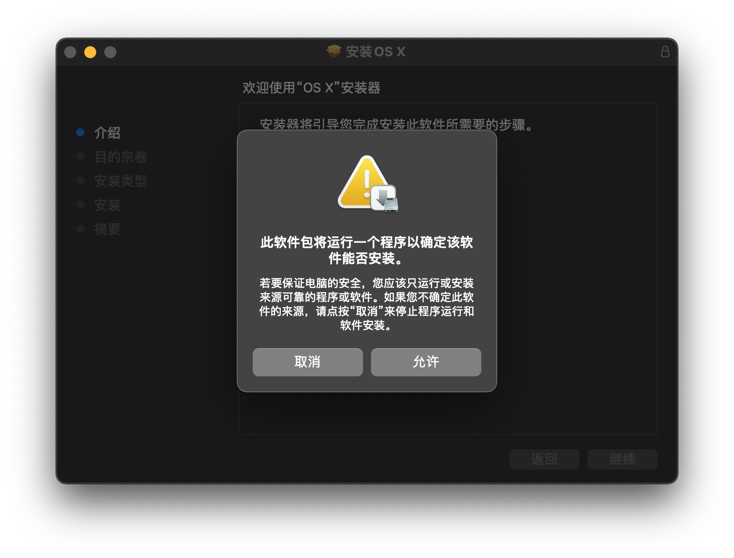我的电脑无法运行install macOSX.pkg 如图所见。