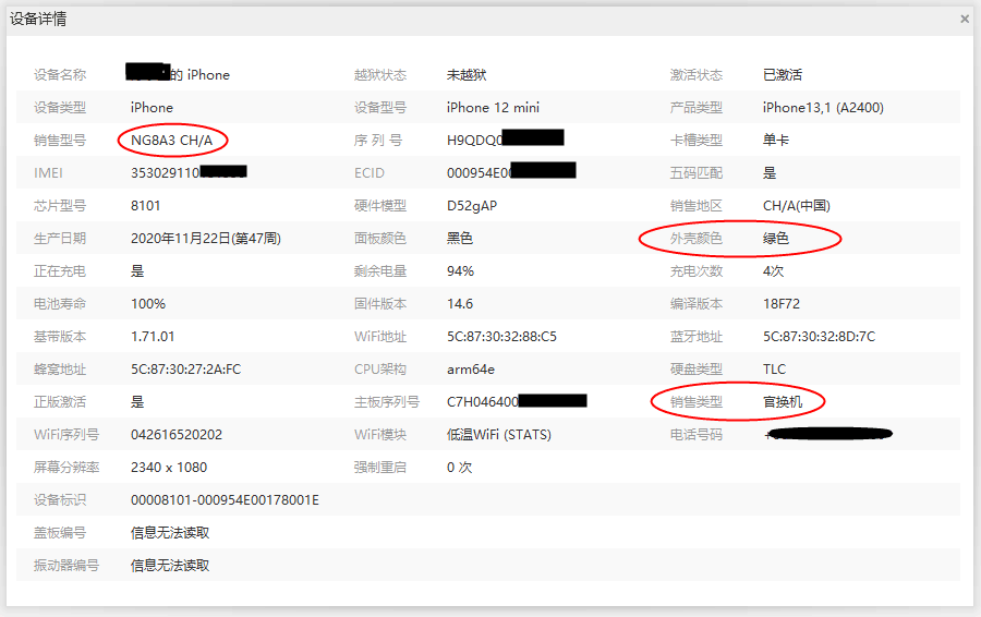 摄像头与A芯片一对一加密,不能通过单独更换来维修,所以Apple给了你一个全新的机器,即您在图二中圈注的“官换机”,自然全部零件序列号与原手机不同。