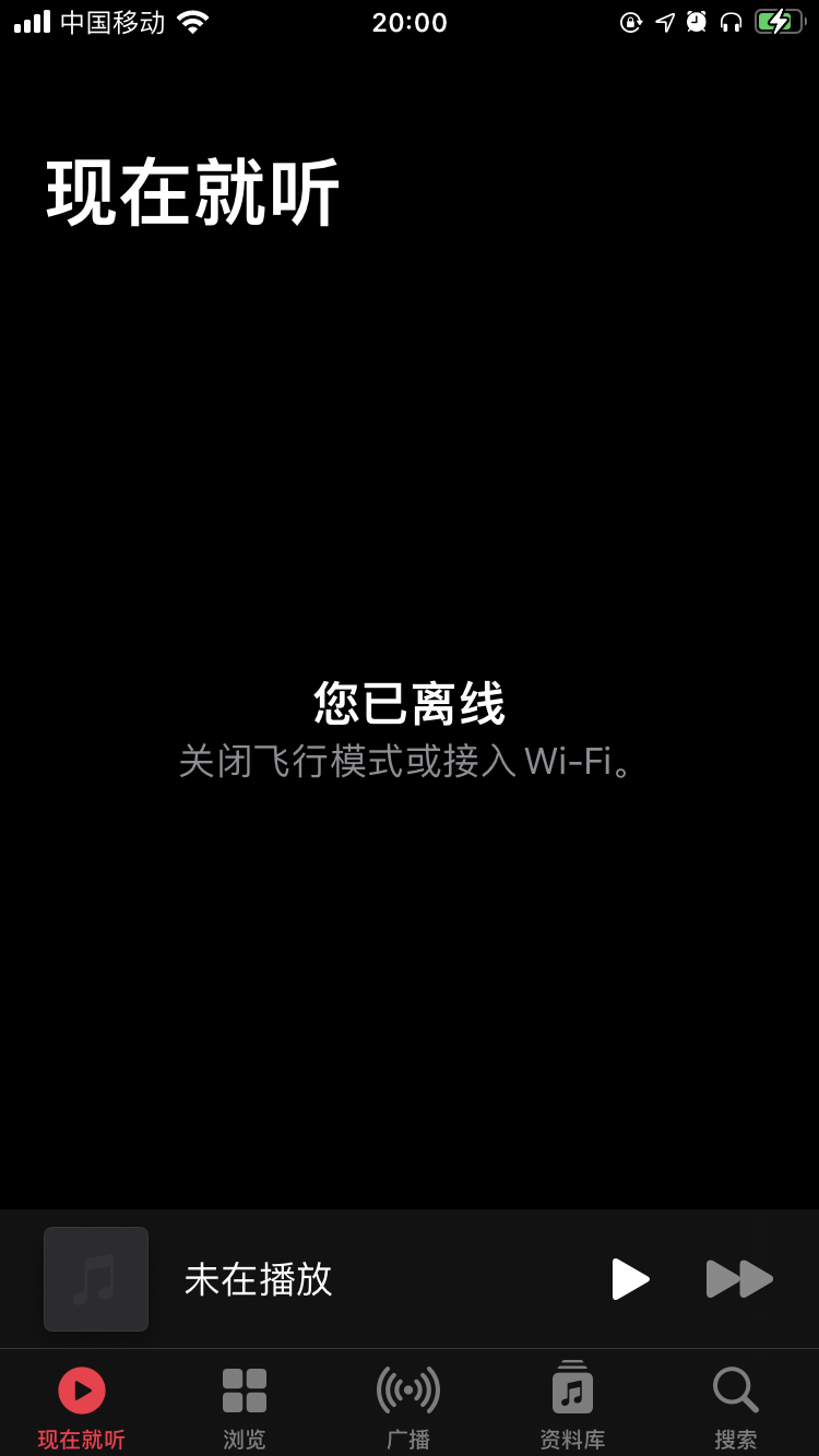 音乐软件只能在蜂窝移动数据下使用,连接Wi-Fi后就显示“您已离线”这是为什么?