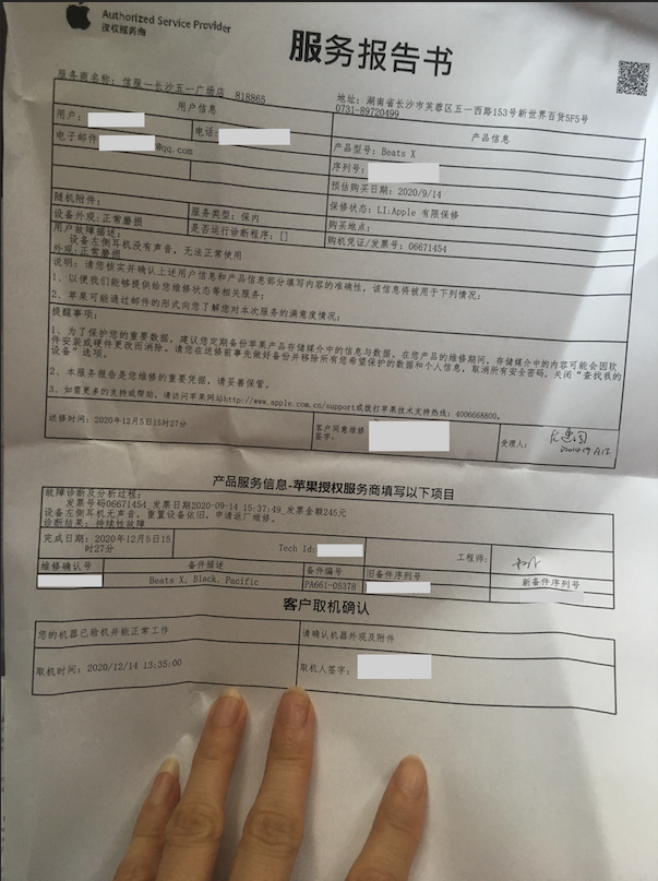 我的Beats耳机🎧,之前有售后过更换了一个新的耳机,但现在这个更换的耳机又坏又我去维修,官网上显示已过保修期,我的购买时间明明还没有一年为什么会显示已过保修期呢