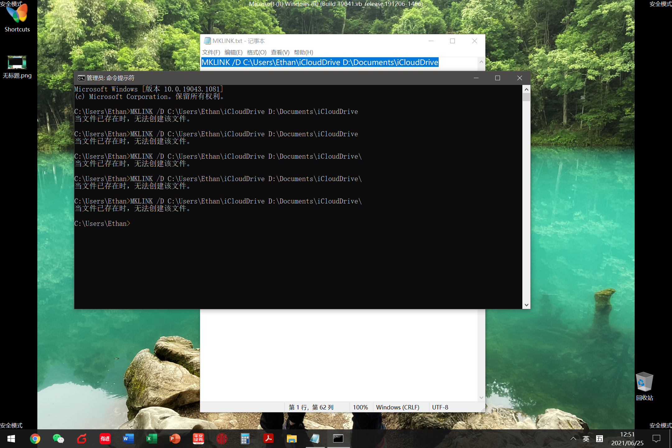 我尝试在任务管理器中结束了所有iCloud相关的进程,依旧无法奏效,甚至重启进入了安全模式去执行MKLINK命令都没有用(已经把要转移到的目录删除让它自己创建)。