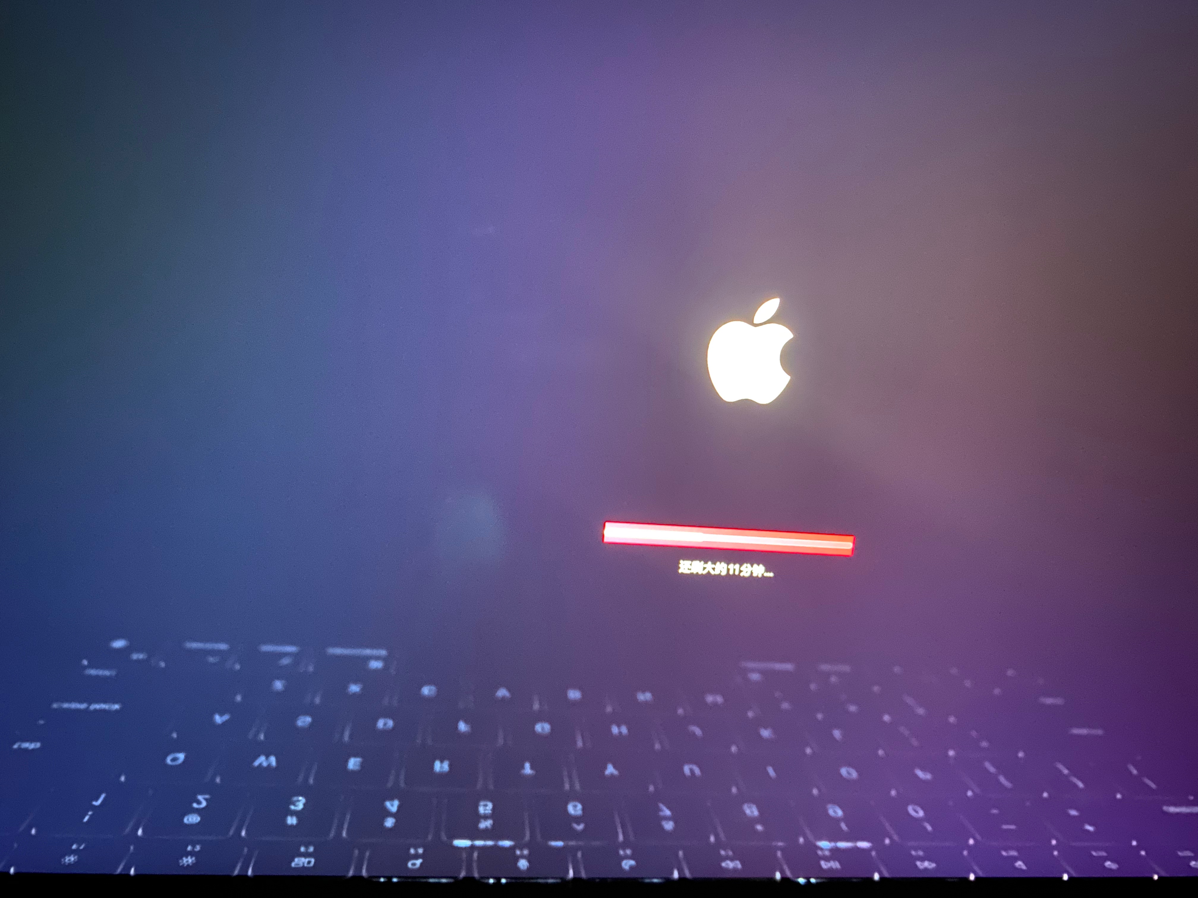 MacBook Air M1升级11.4进度条卡住,强制重启后出现红色进度条